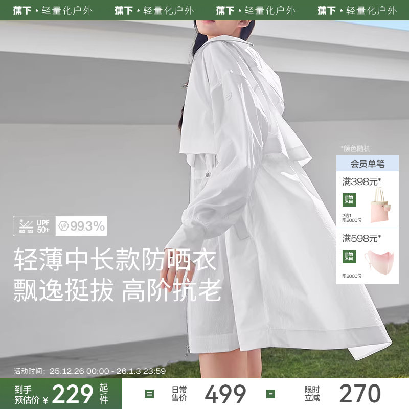 蕉下中长款防晒服TS40424女春夏轻薄透气凉感户外防紫外线防晒衣