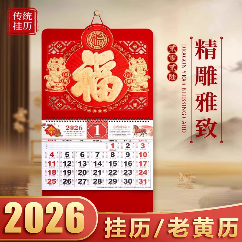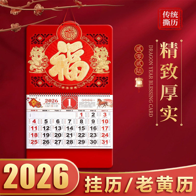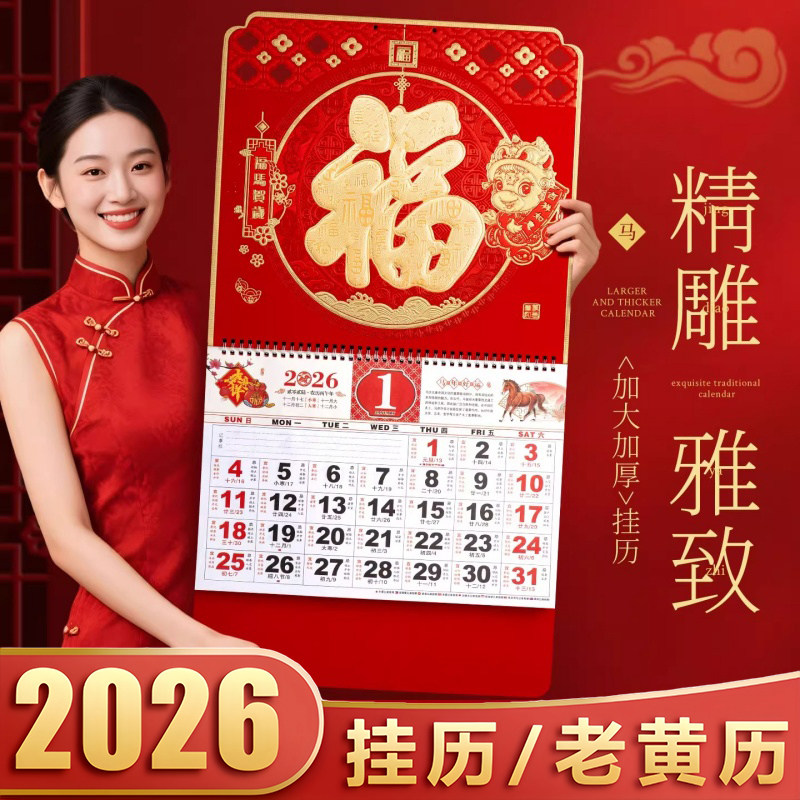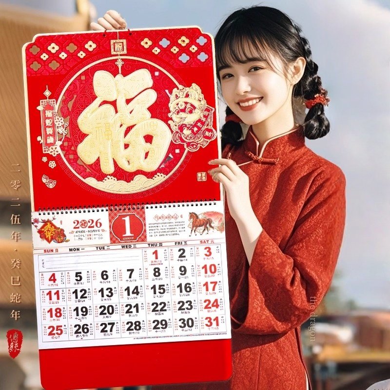 挂墙挂历2026年新款客厅壁挂式大号摆件日历挂件年历家用福字装饰