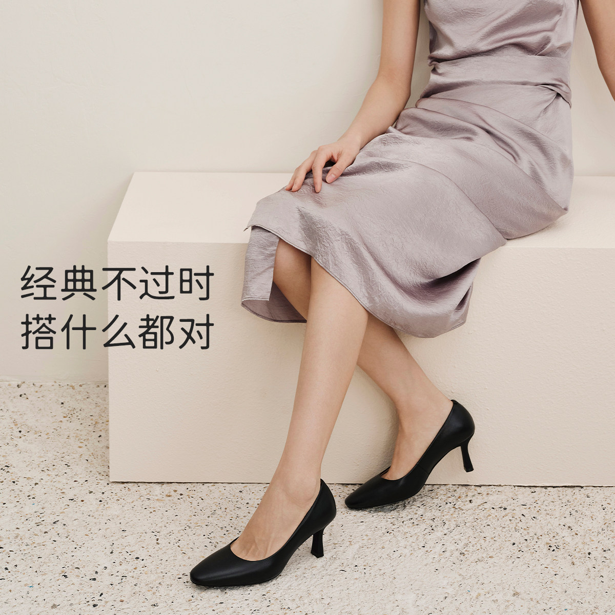 【明星同款|静音系列】千百度练习曲裸色高跟鞋真皮通勤法式单鞋