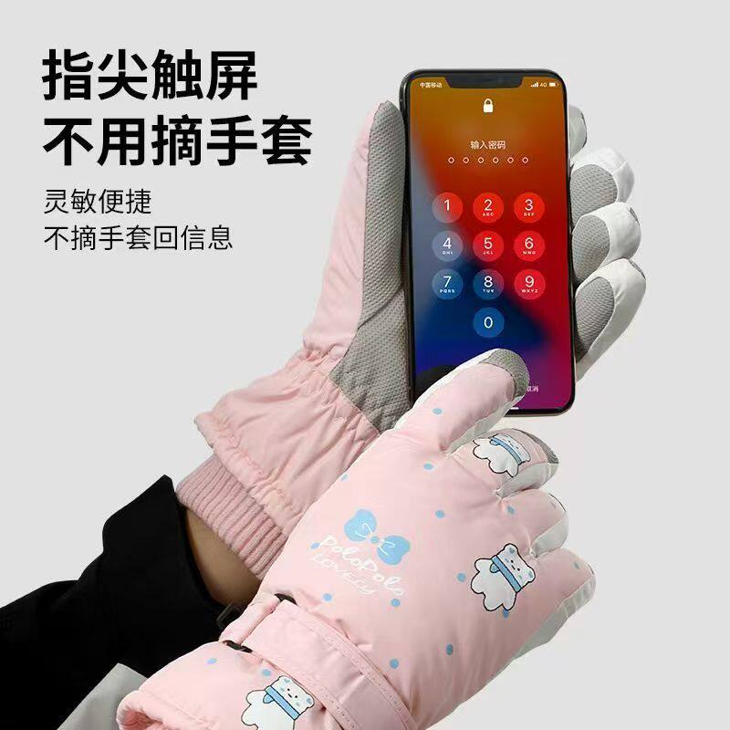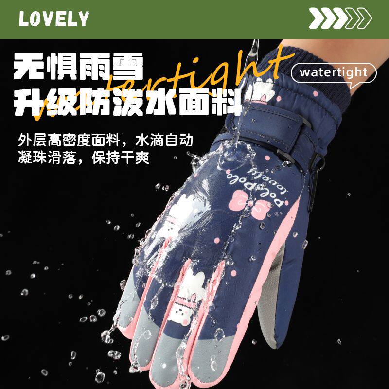 儿童滑雪手套保暖玩雪防水冬季学生骑行加厚男女小孩五指防风防寒