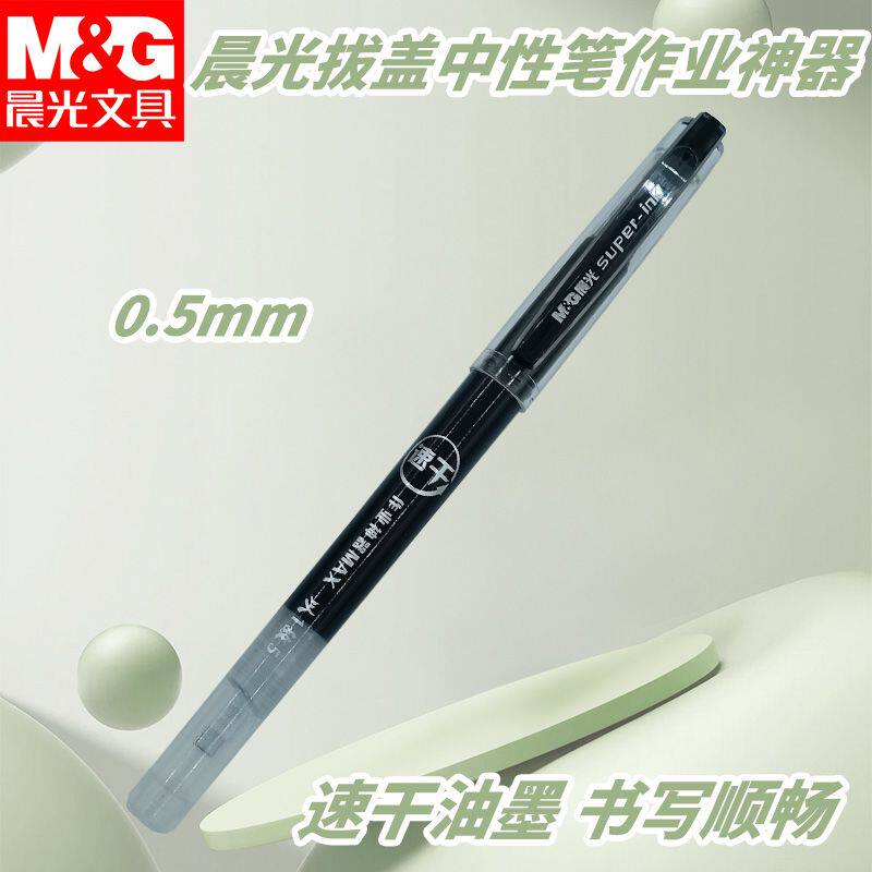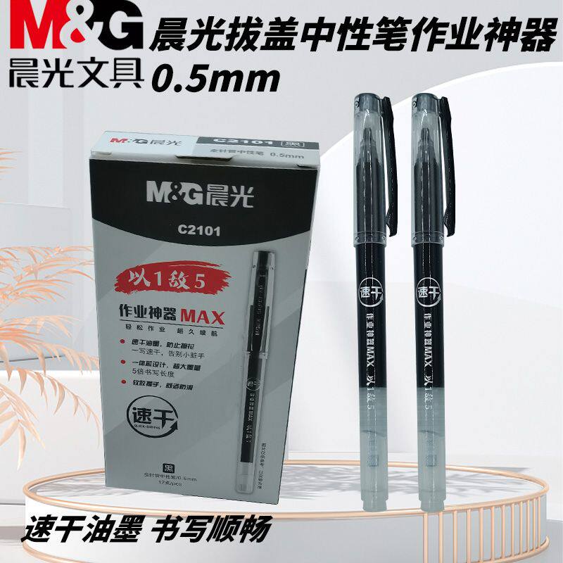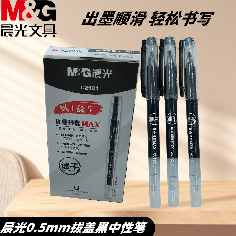 晨光AGPC2101拔盖中性笔作业神器黑全针管0.5速干学生考试办公用