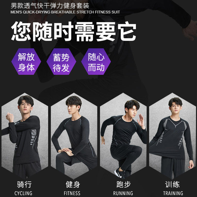 运动套装备男紧身内衣长袖高弹速干篮球训练健身衣服保暖秋冬打底
