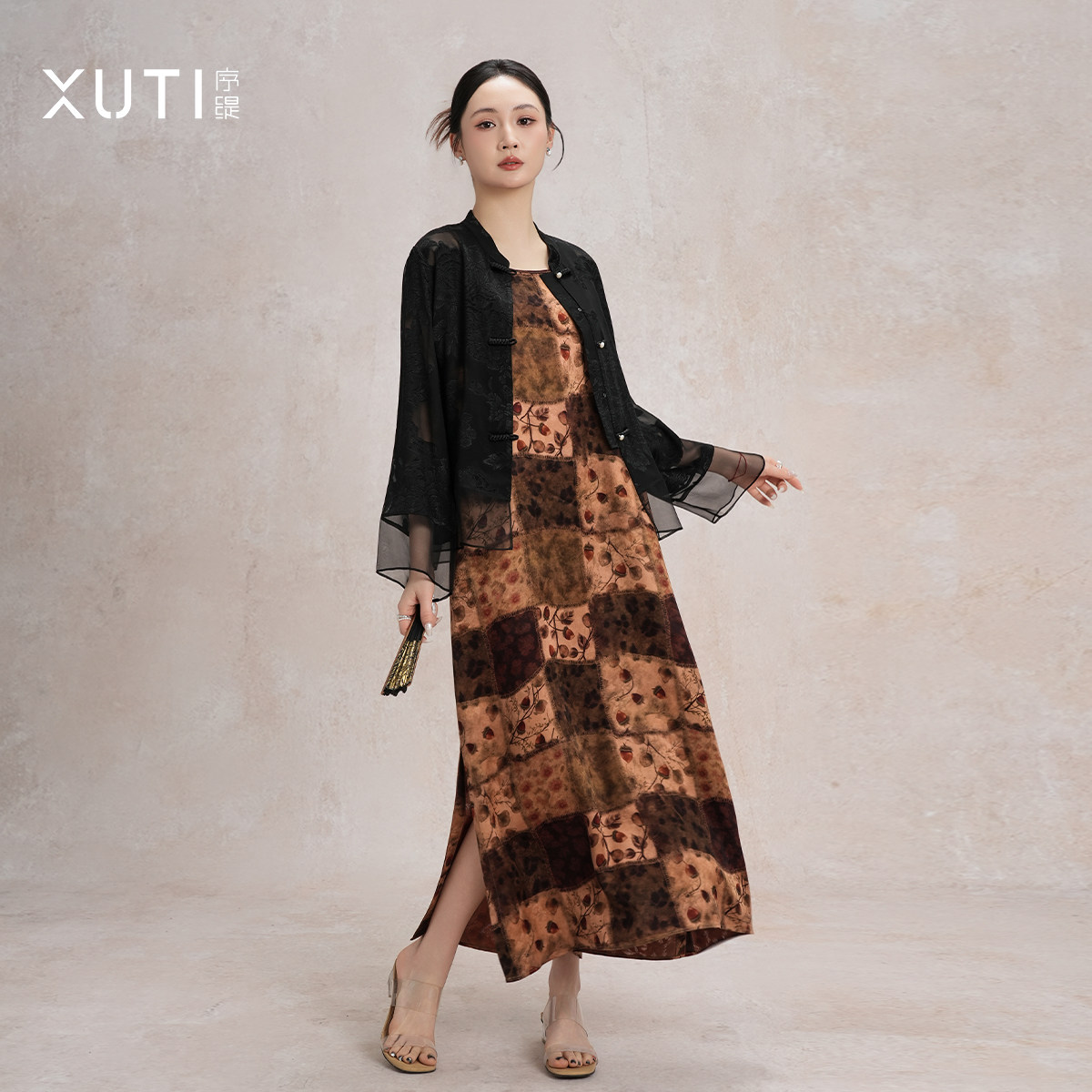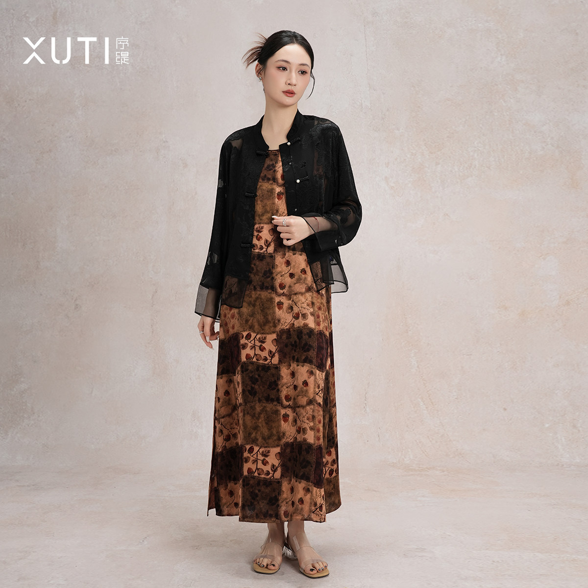 序缇质造非遗红云纱100%桑蚕丝新中式吊带连衣裙女裙子H116-28906