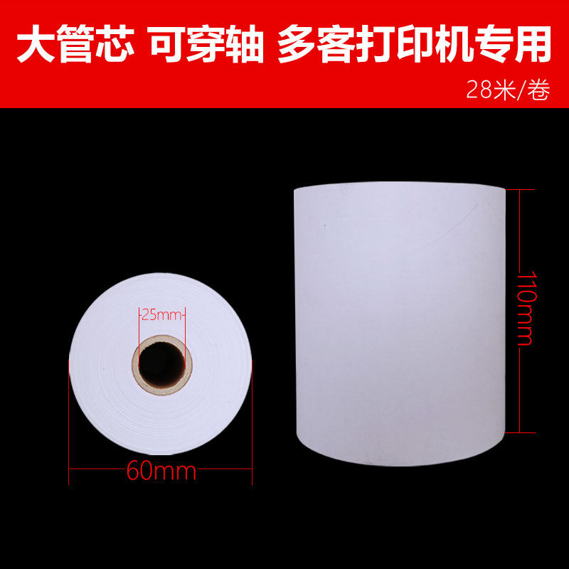 热敏打印纸110*60mm热敏收银纸 大管芯穿轴 银行医院叫号纸热敏处方纸 适用于多客软件打印纸 70卷装
