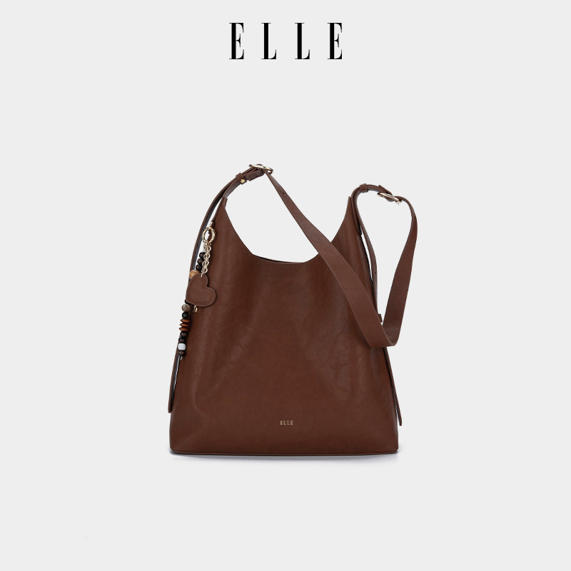 ELLE女包2025新款复古植鞣大容量水桶包时尚百搭单肩斜挎包高级感