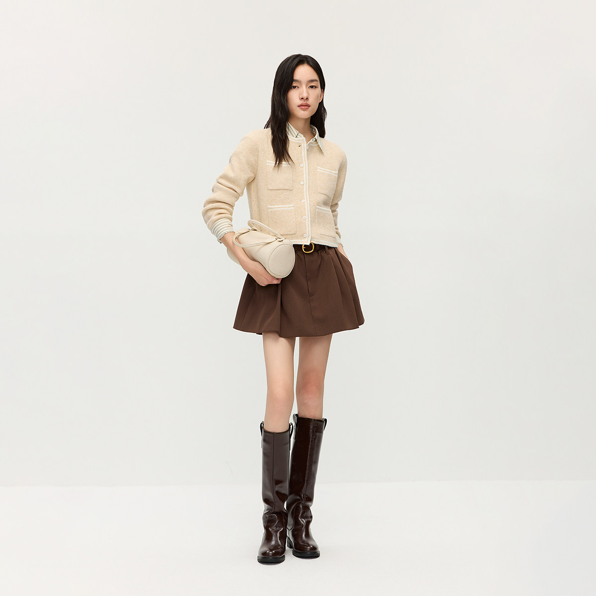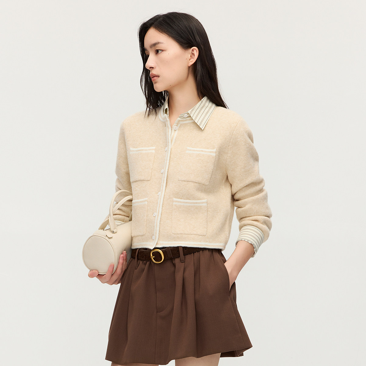 【季末折扣】欧时力小香风撞色边针织外套开衫小个子2025秋冬新品