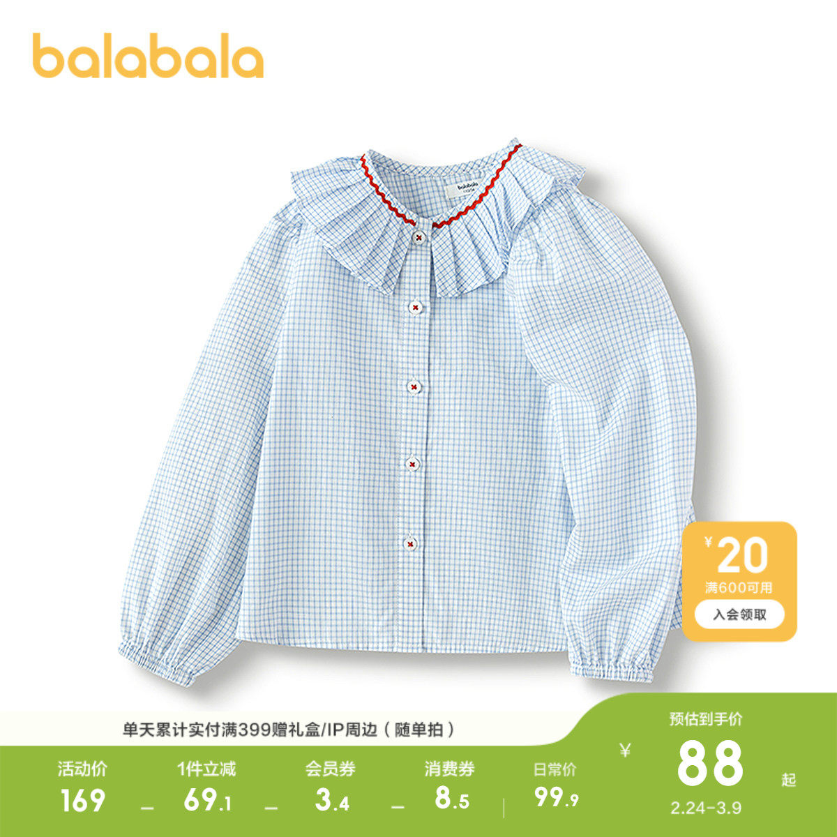 巴拉巴拉童装女童长袖衬衫儿童法式格子衬衣2025新款春秋装时尚潮