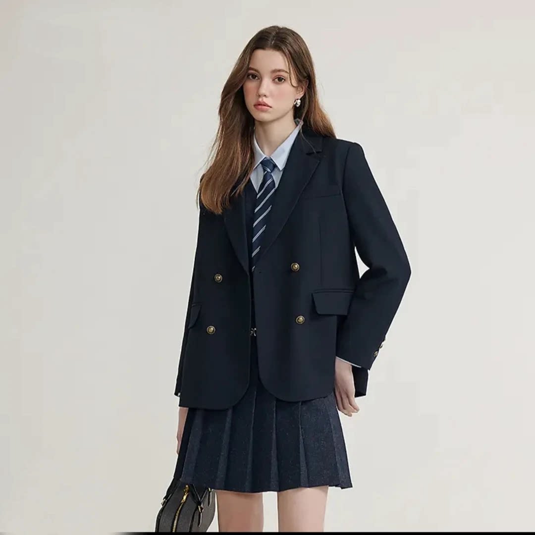 喵铃少女/莓喵jk原创西服jk制服套装正版圆领西装学院风日系浓绀