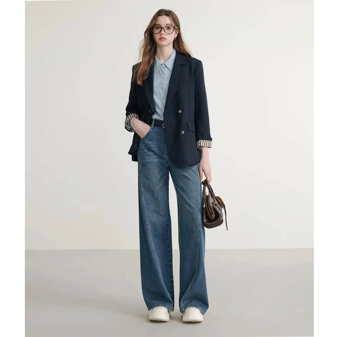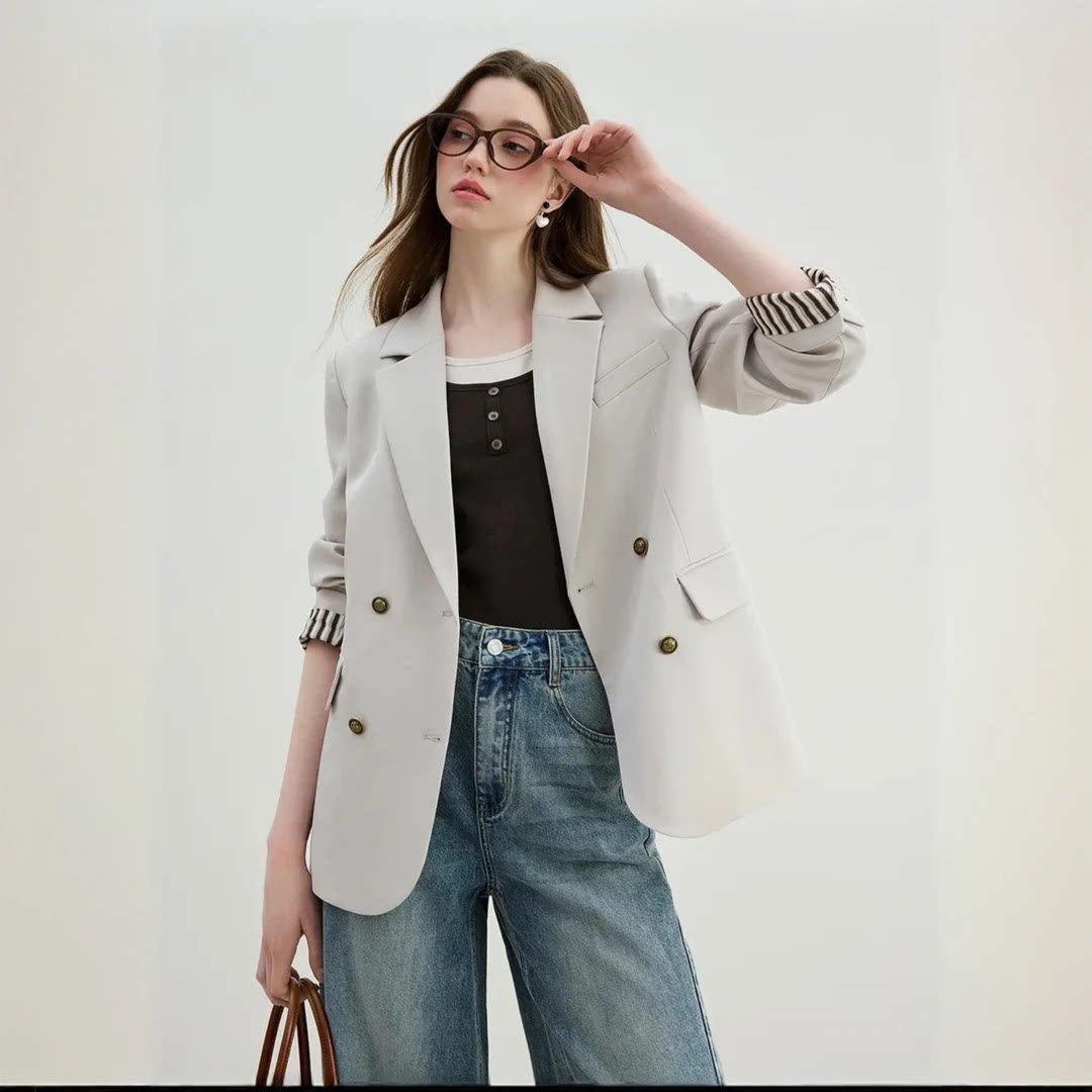 撞色翻袖双排扣西装外套女2026春季新款时尚简约休闲西服上衣
