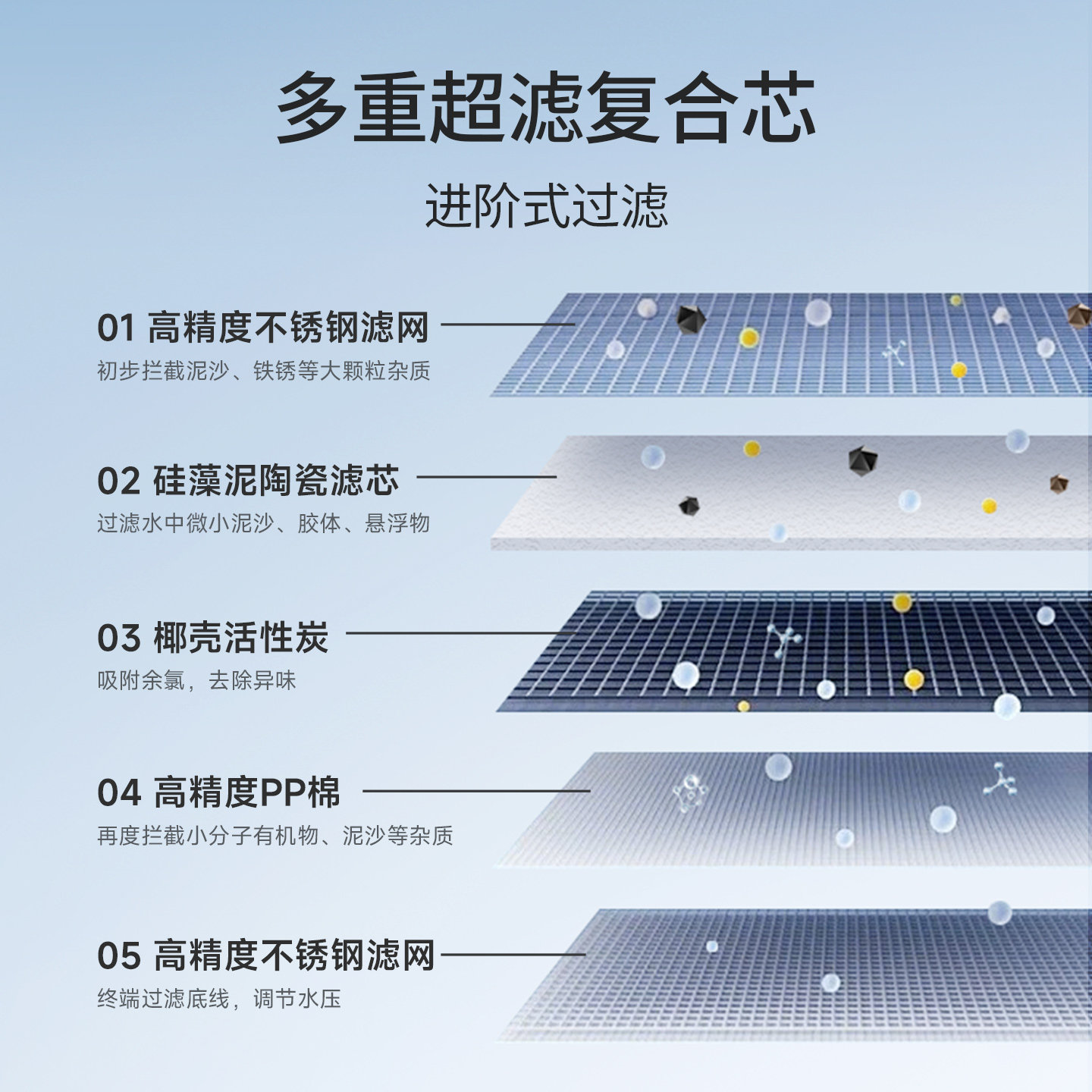 净水器家用直饮厨房自来水超滤净化水机前置活性炭五级过滤器