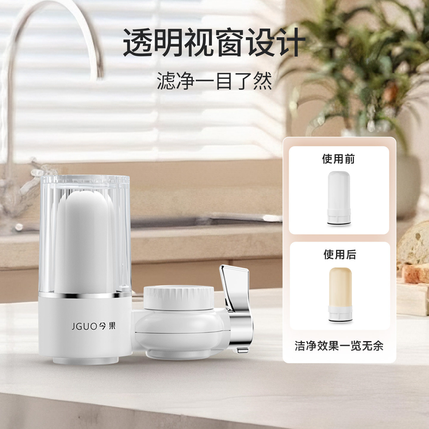 JGUO今果厨房自来水净水器 家庭水龙头过滤器浴室净化机除氯除菌