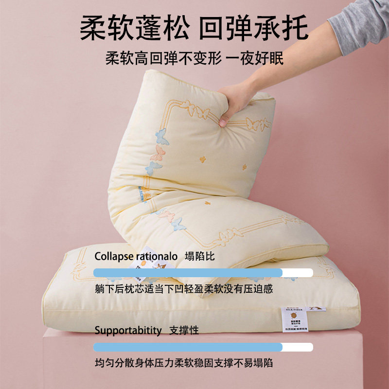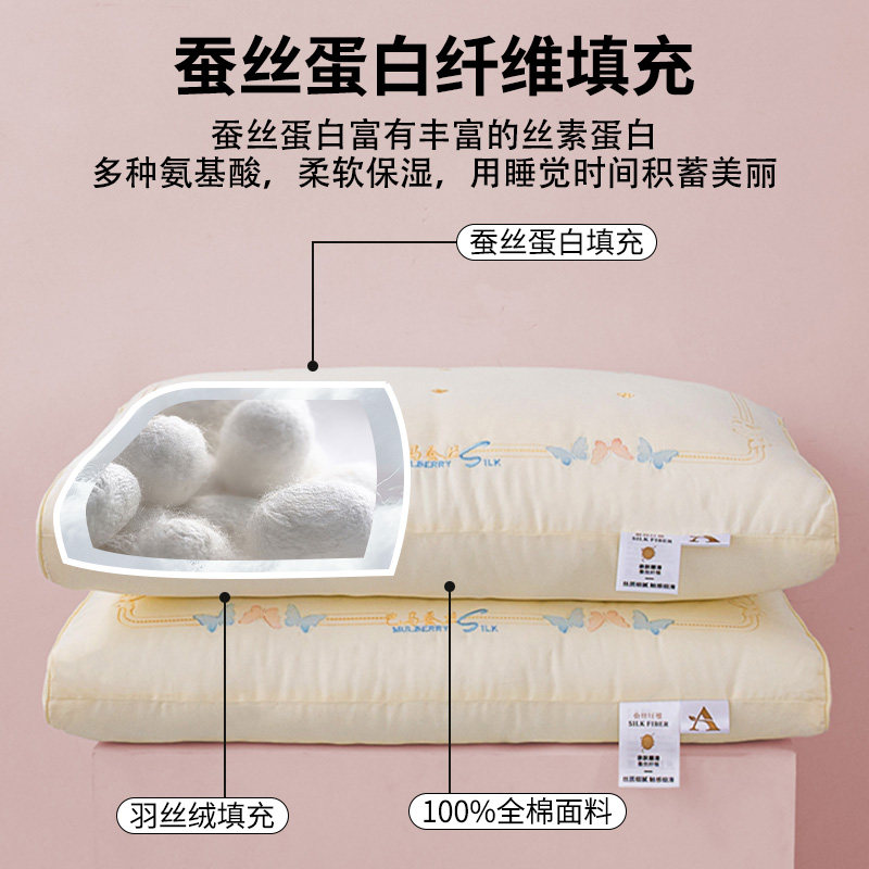 全棉蚕丝枕头枕芯一对护颈椎助睡眠单人女生成人家用儿童低枕棉花