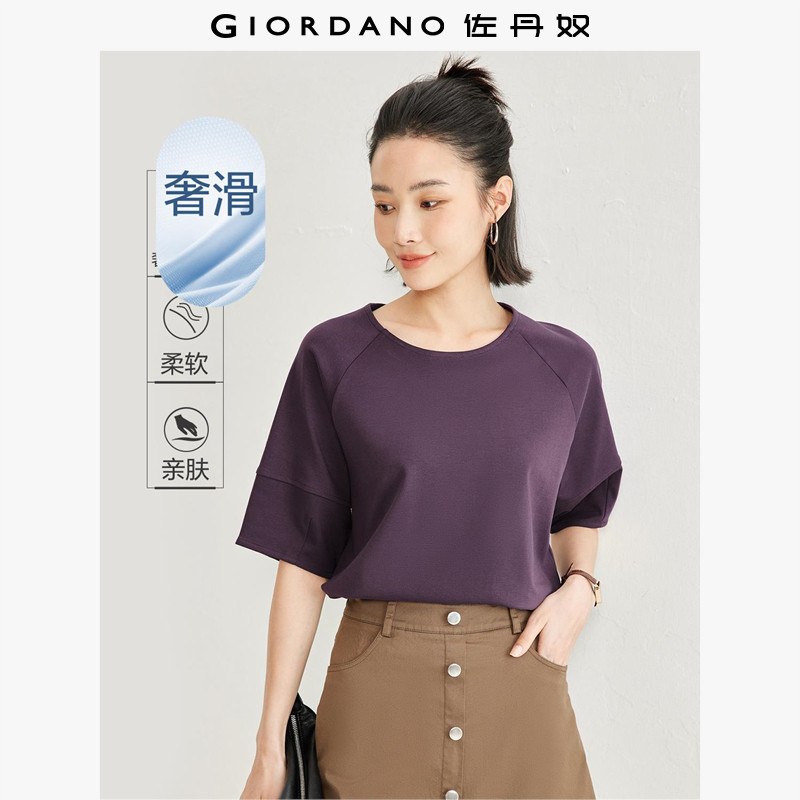 佐丹奴短袖t恤女新款时尚纯棉双面布灯笼袖宽松圆领上衣05324425