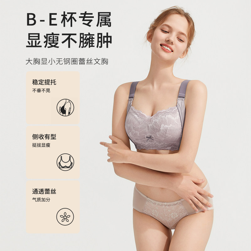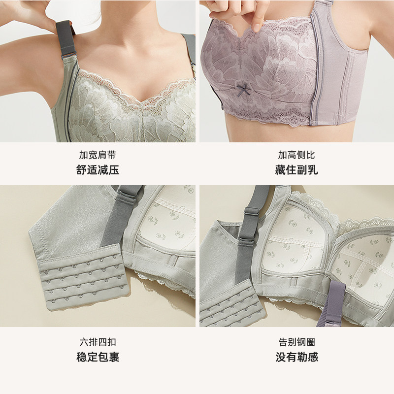 都市丽人大胸显小文胸轻薄透气全罩杯聚拢调整型提拉蕾丝女内衣