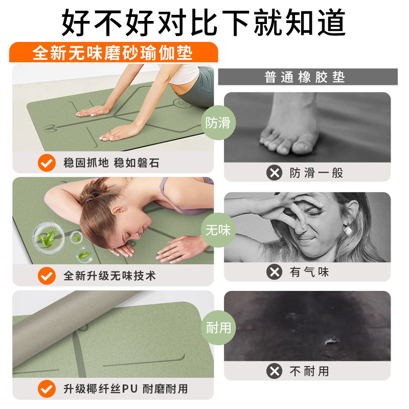 女2026新款椰丝磨砂瑜伽垫pu+橡胶防滑加厚土豪垫家用健身运动垫