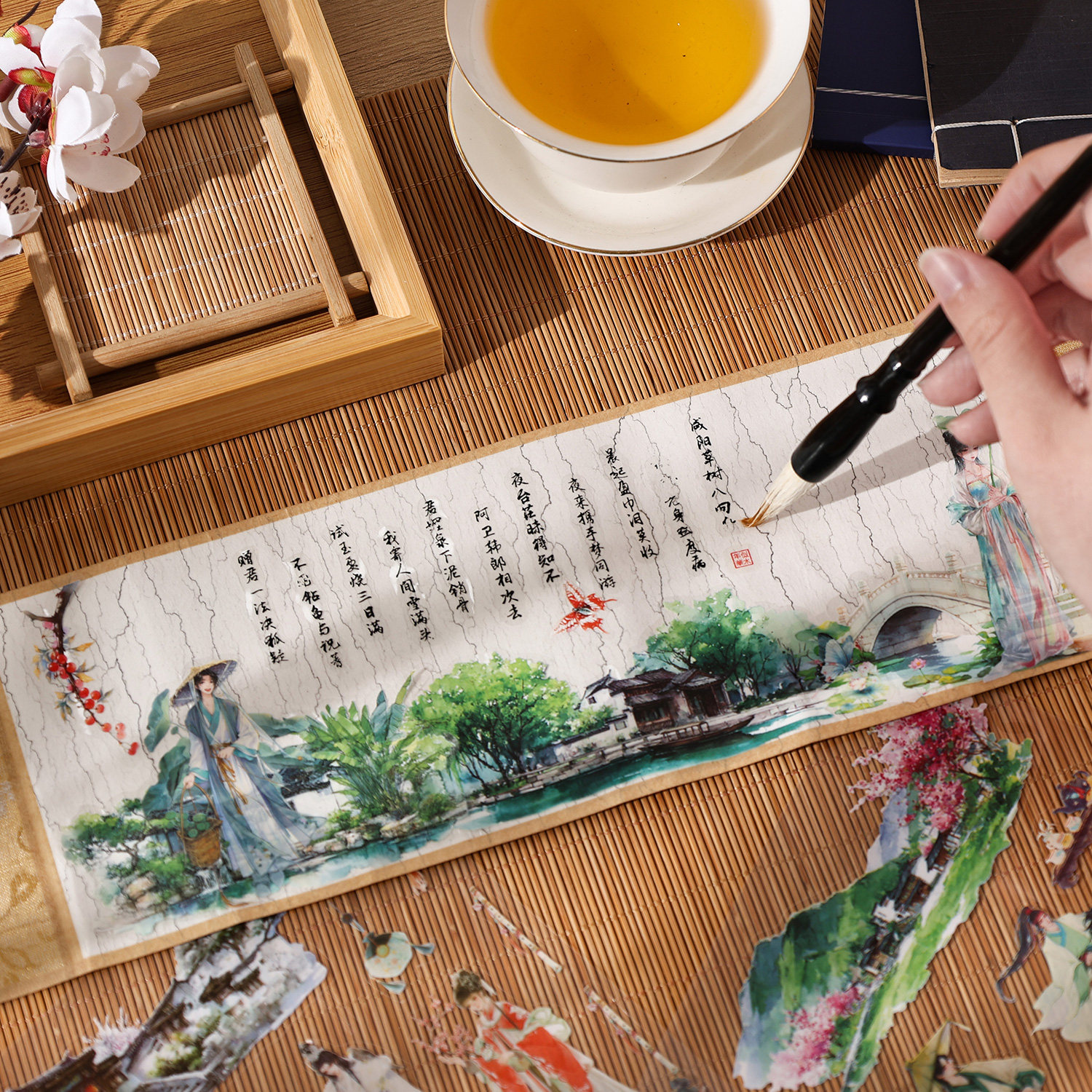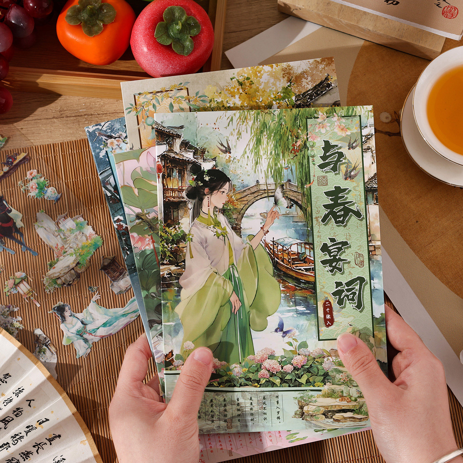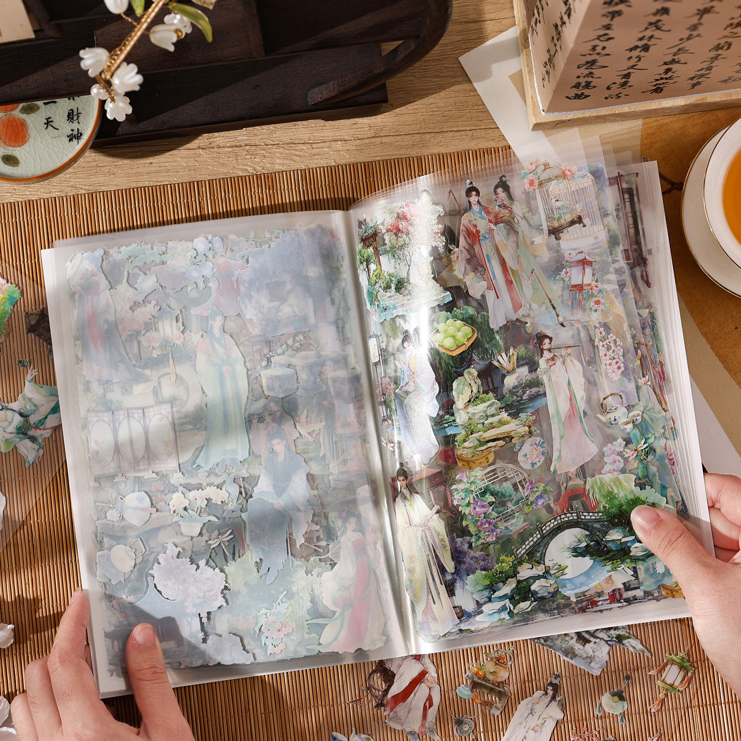 悦真古风贴纸本套装中国风古典美女装饰贴纸DIY素材手抄报pet贴纸