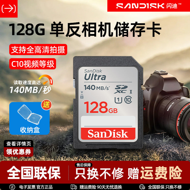 闪迪sd卡128g内存储存卡 256g佳能相机内存卡 索尼富士尼康存储卡