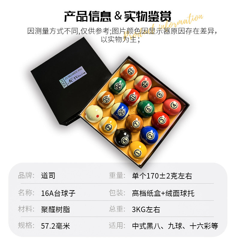 水晶台球球子母球桌球球珠黑八台球雅乐美tv球黑金刚中8标准白球