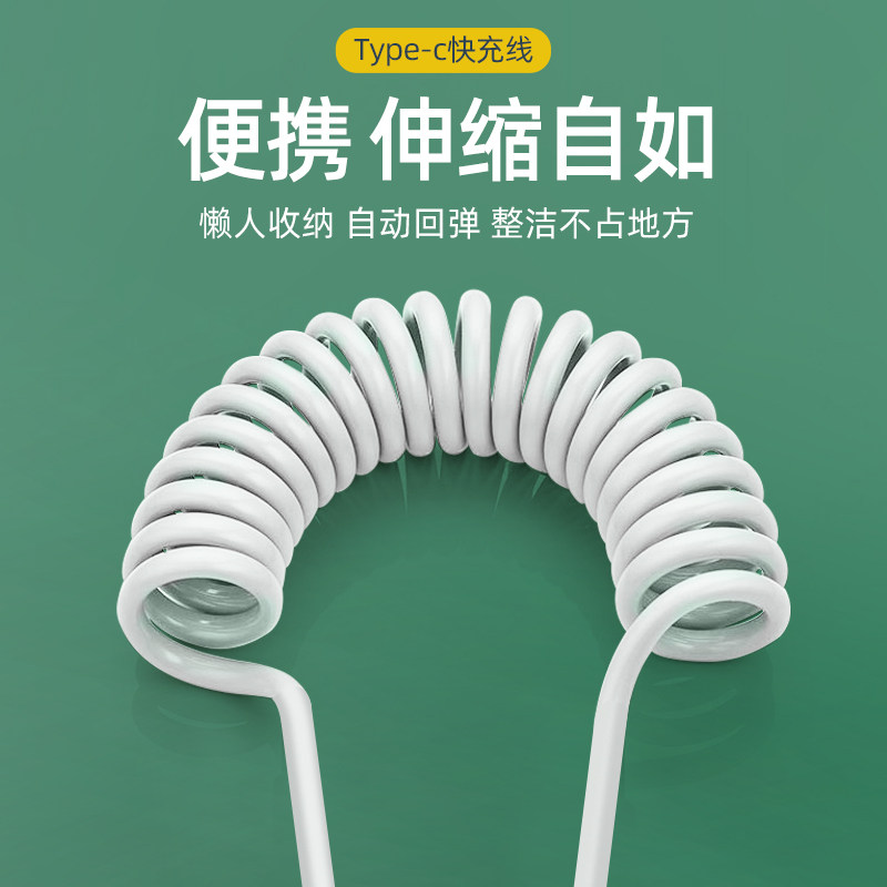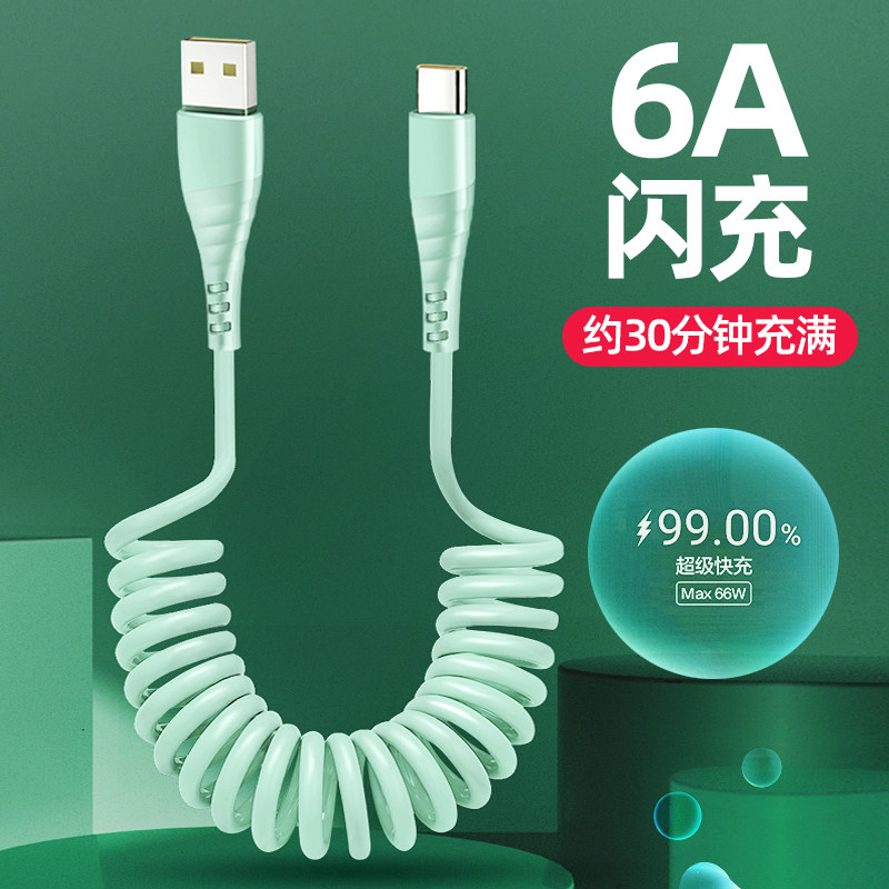 Type-c数据线6A充电线车载弹簧线适配oppo华为vivo荣耀realme一加
