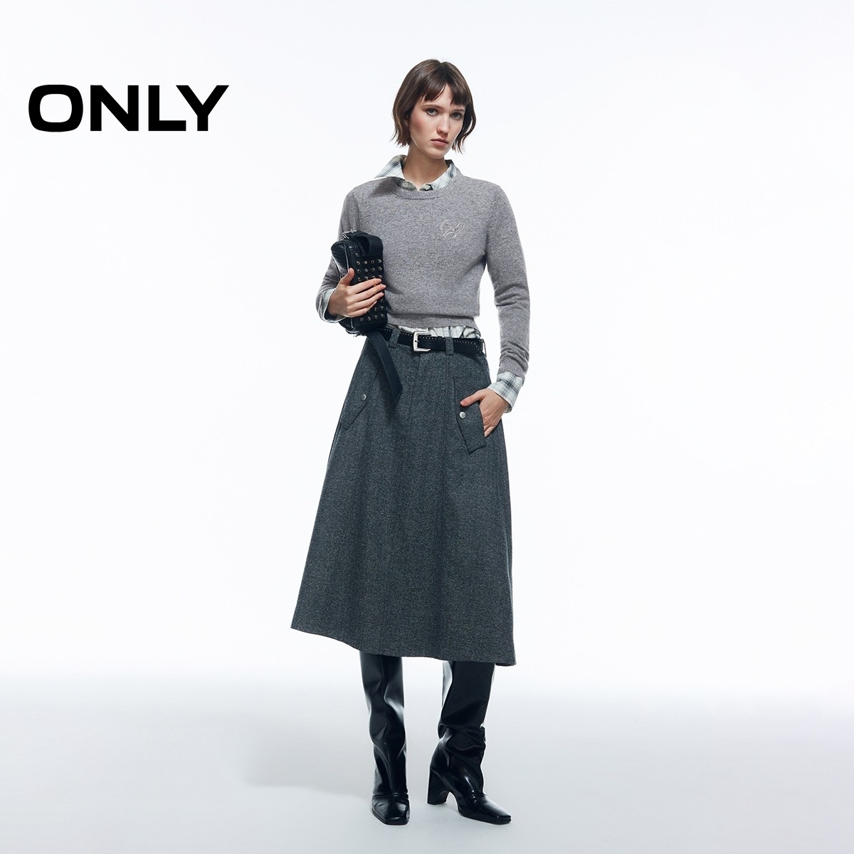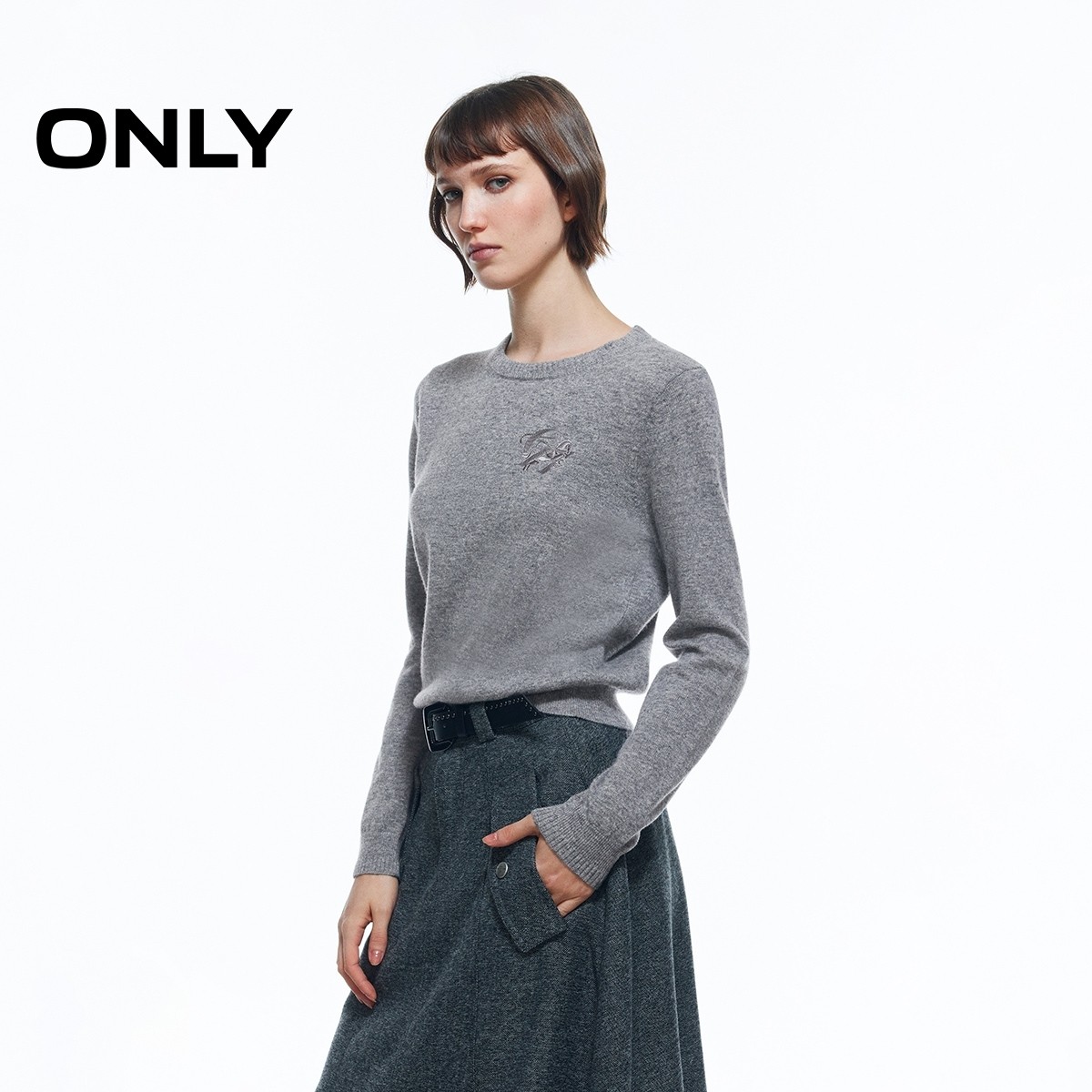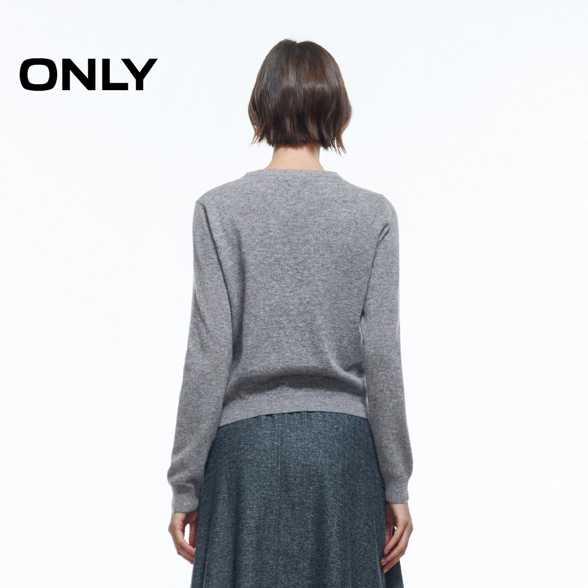 ONLY2026春季新款绵羊毛都市通勤正肩圆领含长袖毛衣针织衫上衣女