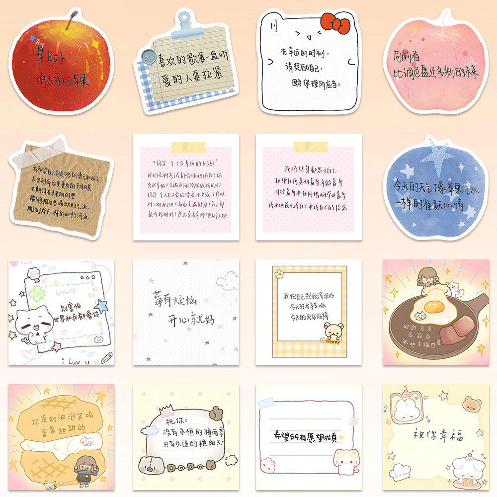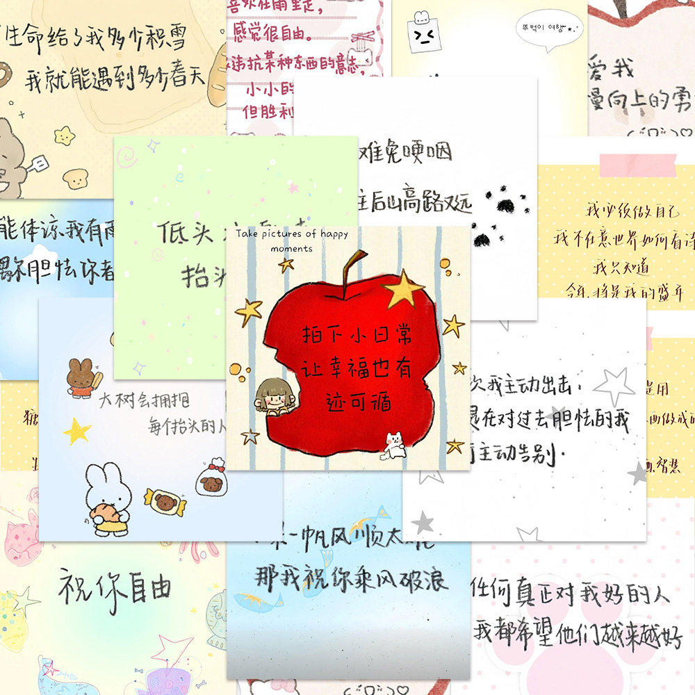 160张手写背景图贴纸ins高颜值卡通治愈可爱手写文字ins创意贴画