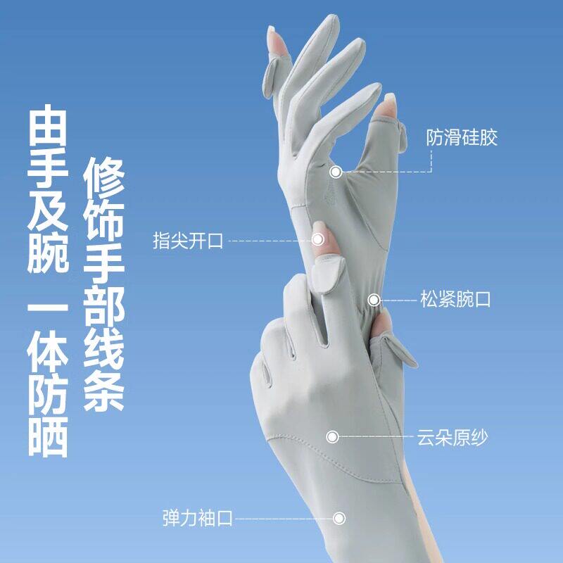 防晒手套女防紫外线2026新款冰丝夏季薄电动开车骑行露指加长手套
