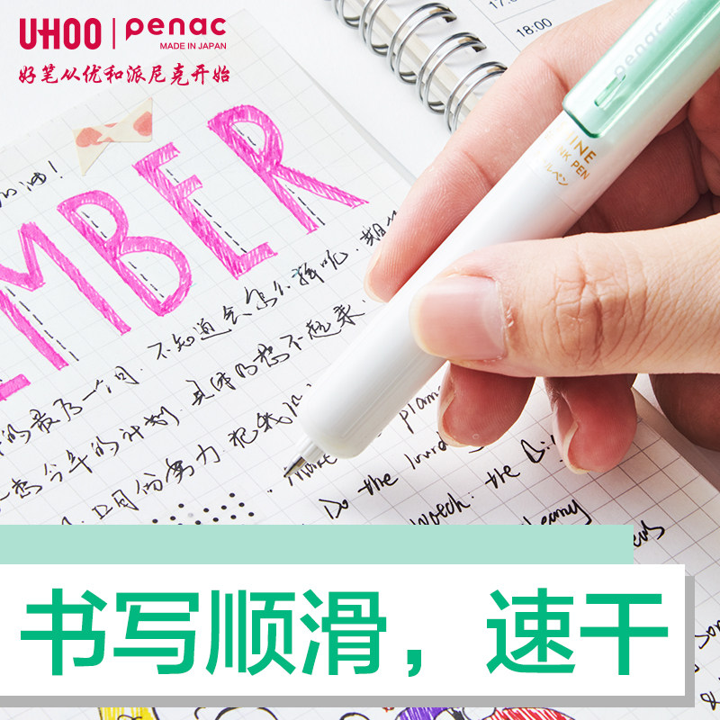 日本Penac派尼克ins风高颜值胖胖笔黑色中性笔按动笔小身材大容量速干防水0.5学生用刷题考试笔开学必备文具