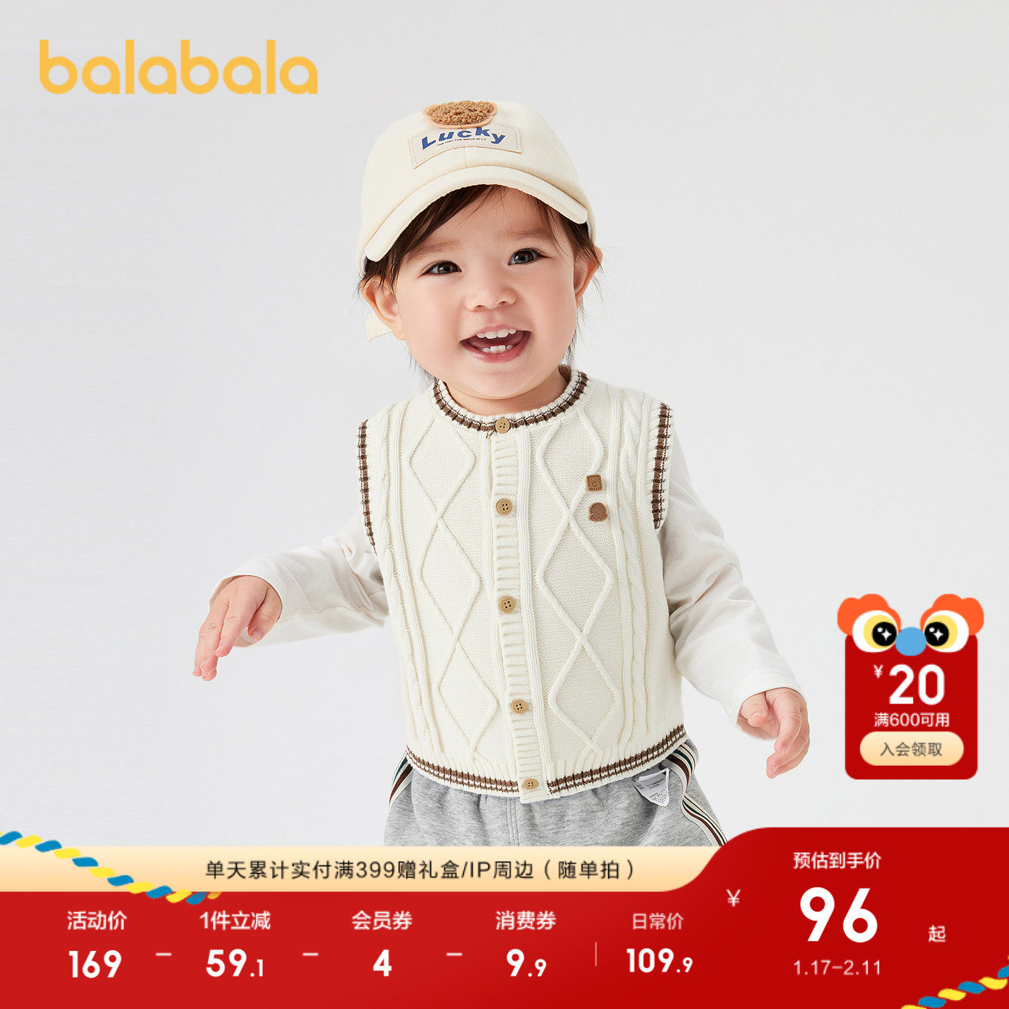 巴拉巴拉童装宝宝马甲男童针织衫圆领开衫毛衣2025秋新款时尚潮酷