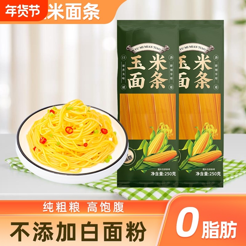 东北玉米面条250g正宗纯玉米挂面粗粮面条低脂饱腹杂粮黄面条代餐
