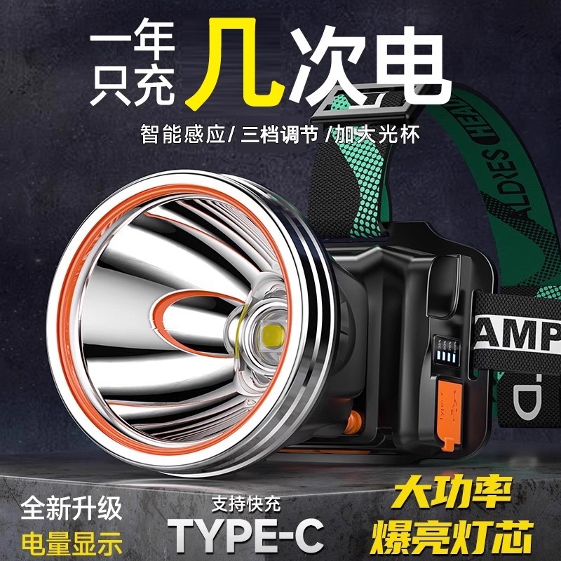 头灯2025新款强光超亮充电头戴式照明灯矿灯户外钓鱼专用感应矿灯