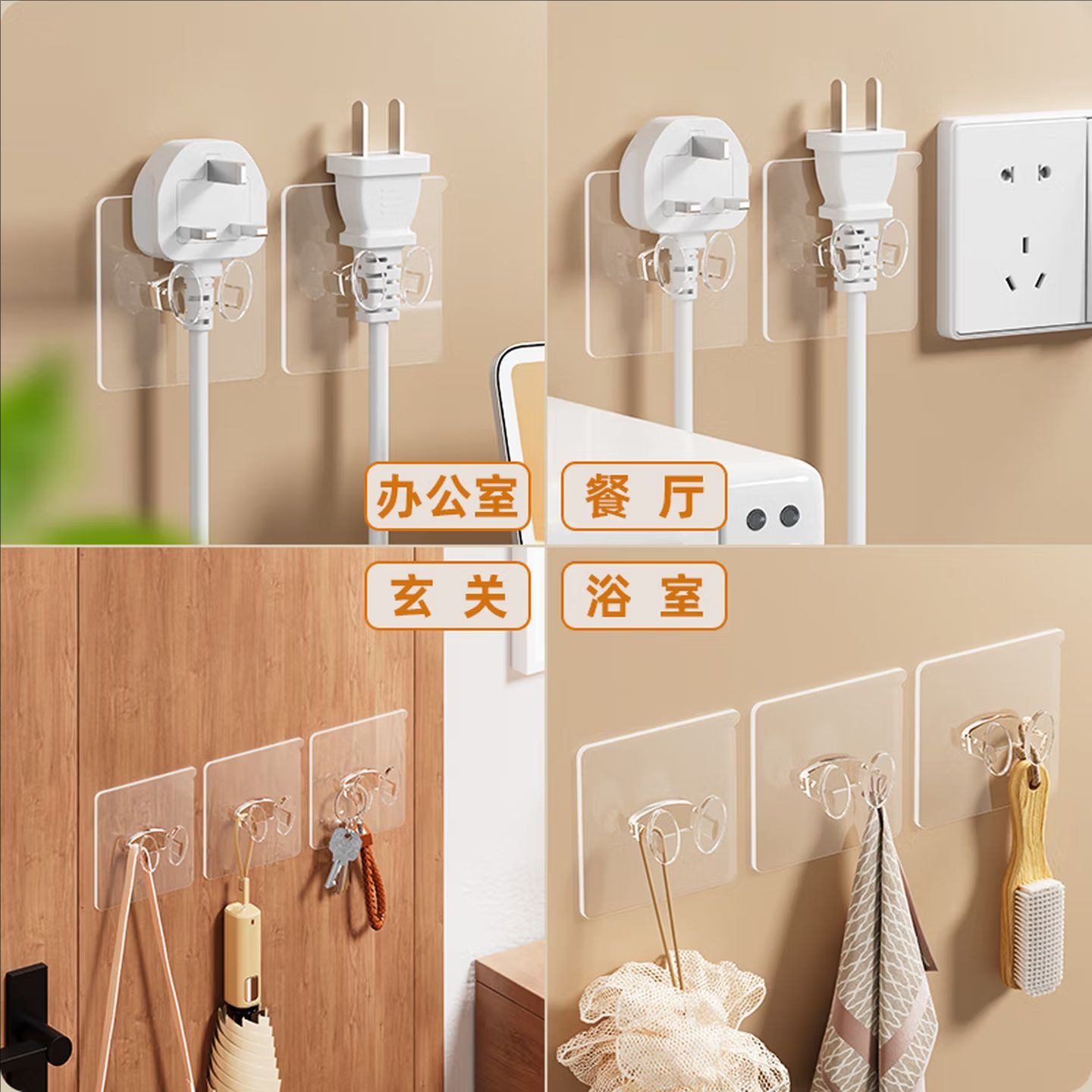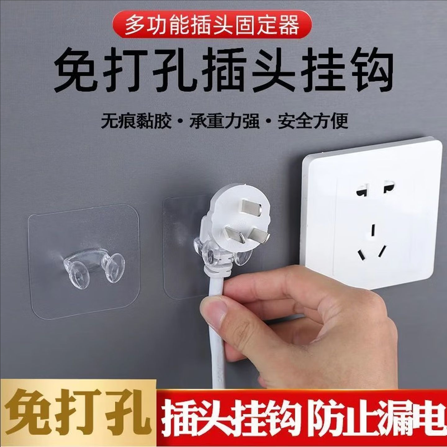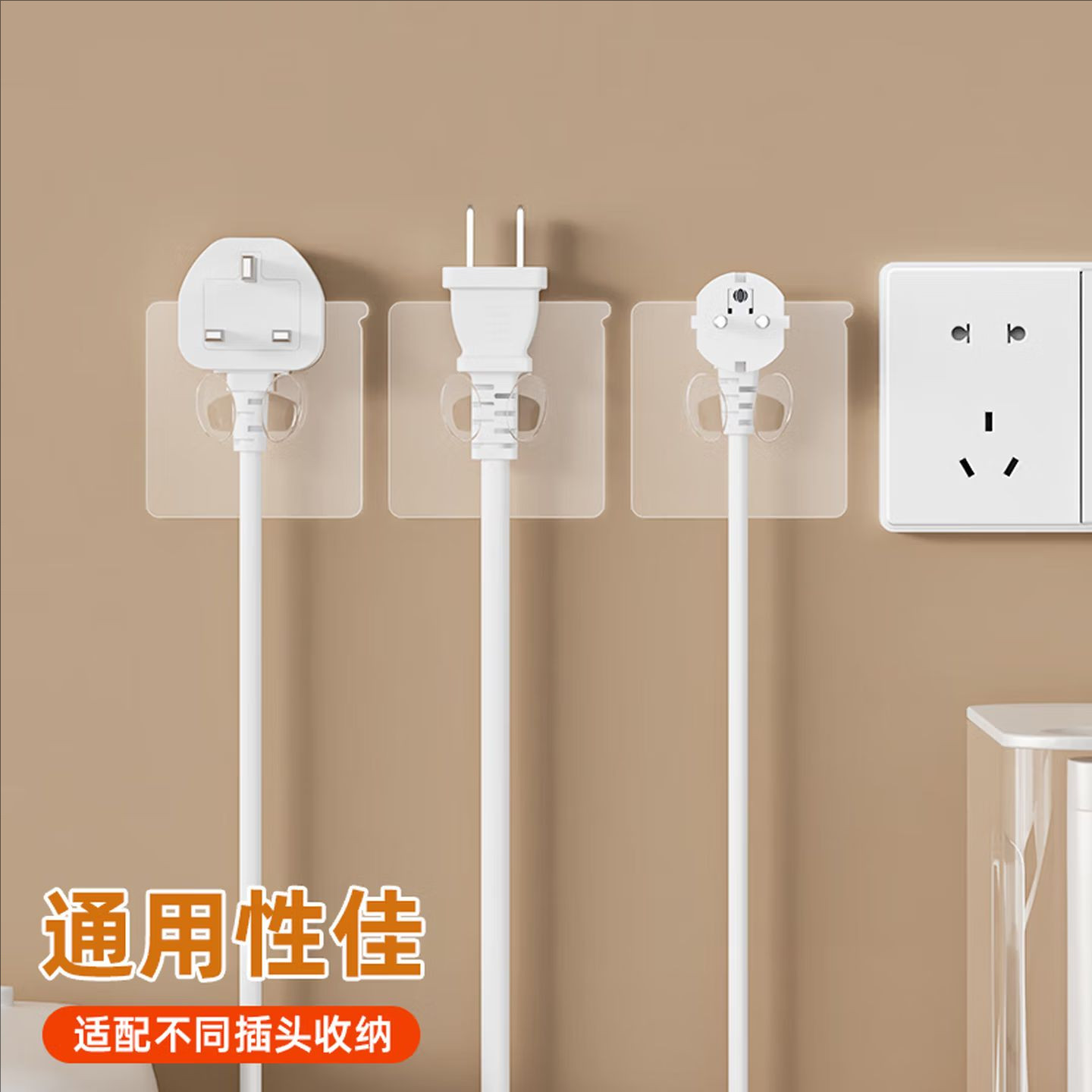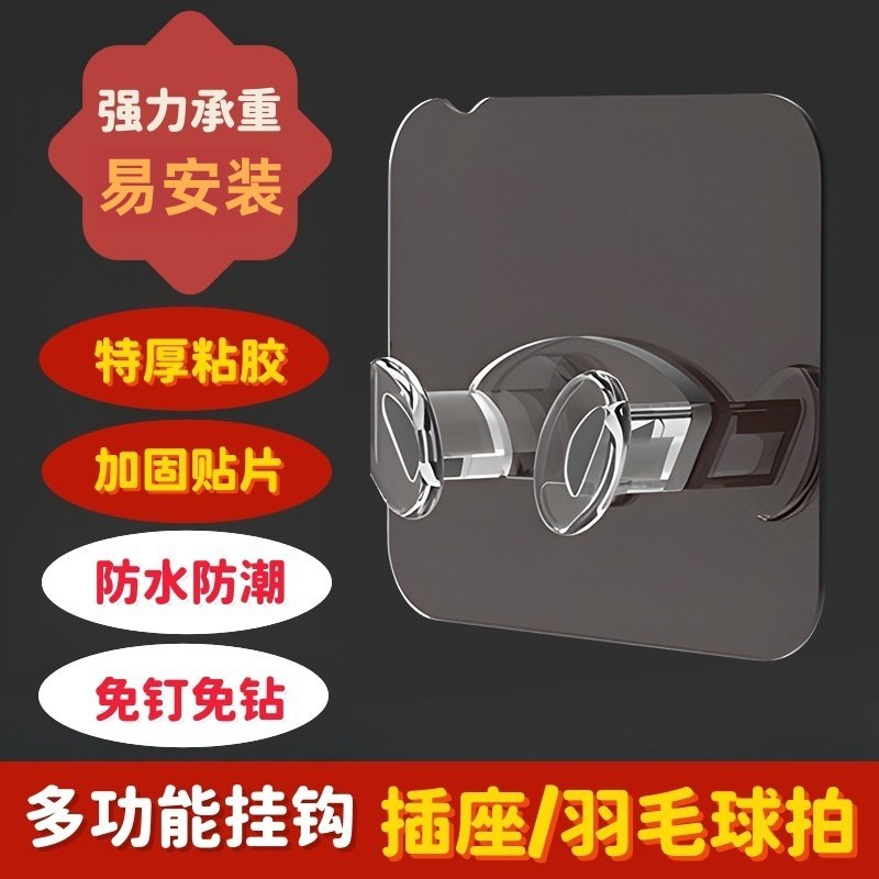 多功能插头挂钩粘钩强力粘胶免打孔电源线厨房墙壁插座收纳固定器