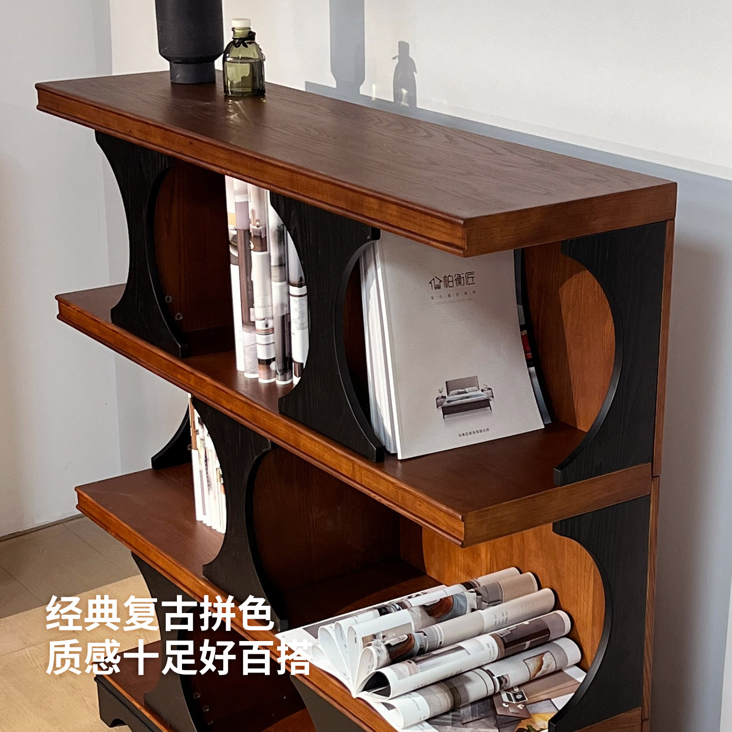 优尚雅轩哈迪德法式复古半墙书柜矮书架实木展示柜客厅边柜组合柜