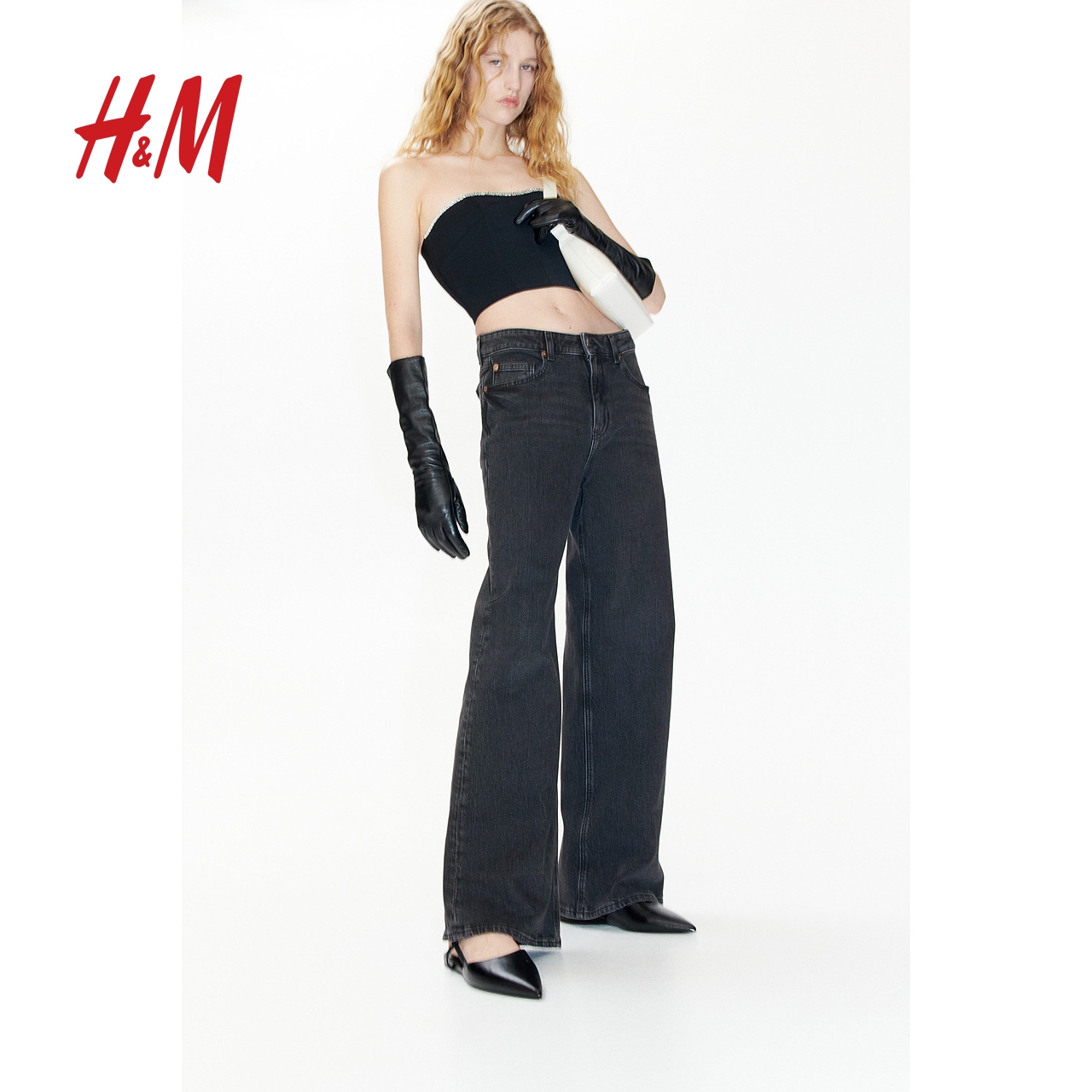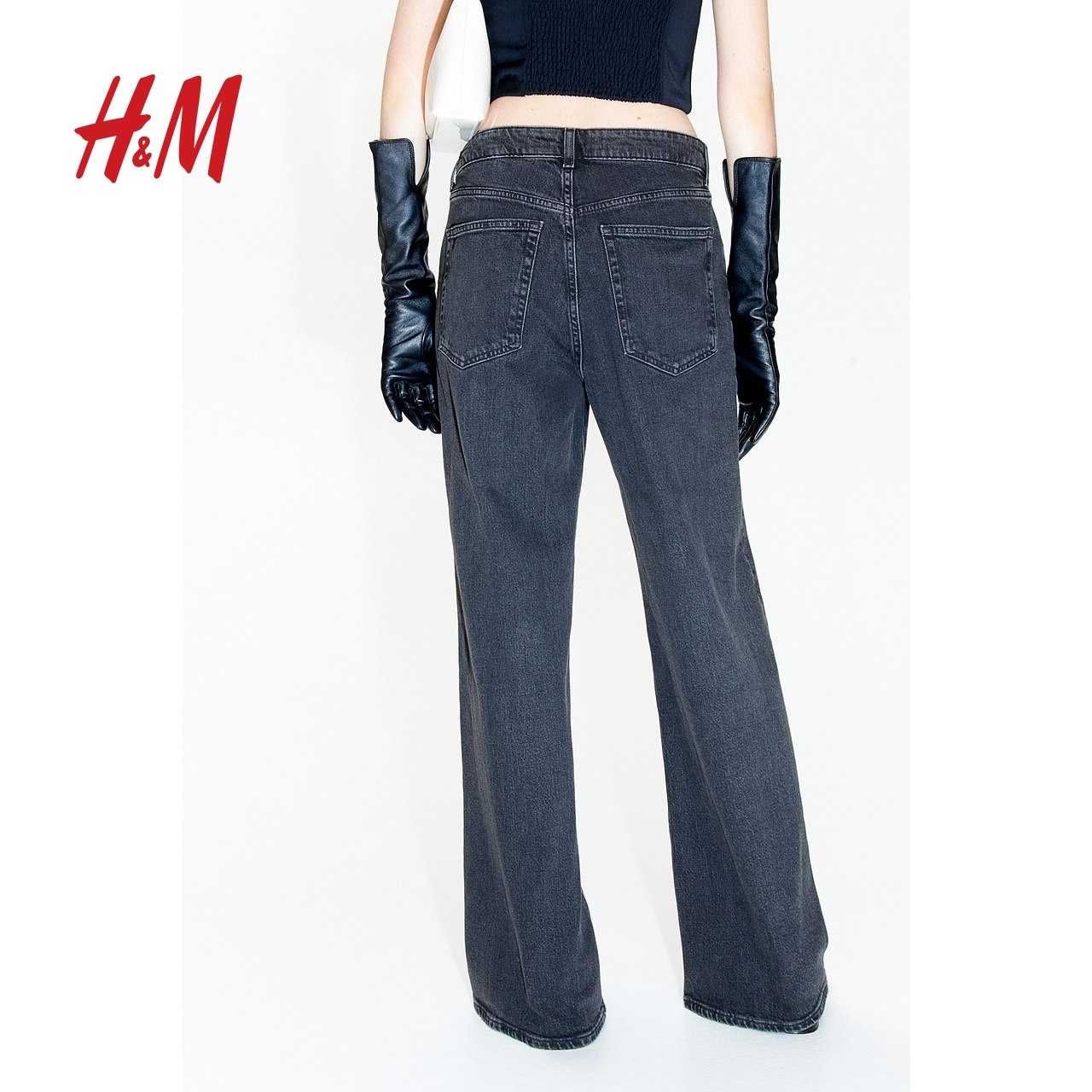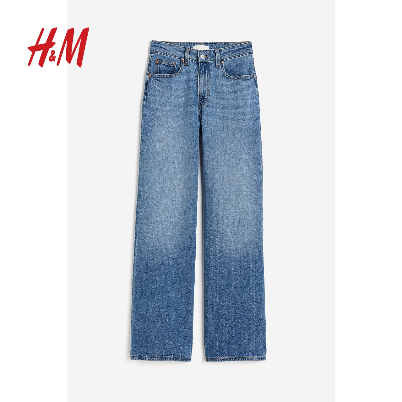 HM女装牛仔裤春季阔腿版型时尚高腰水洗牛仔裤潮流长裤1045459