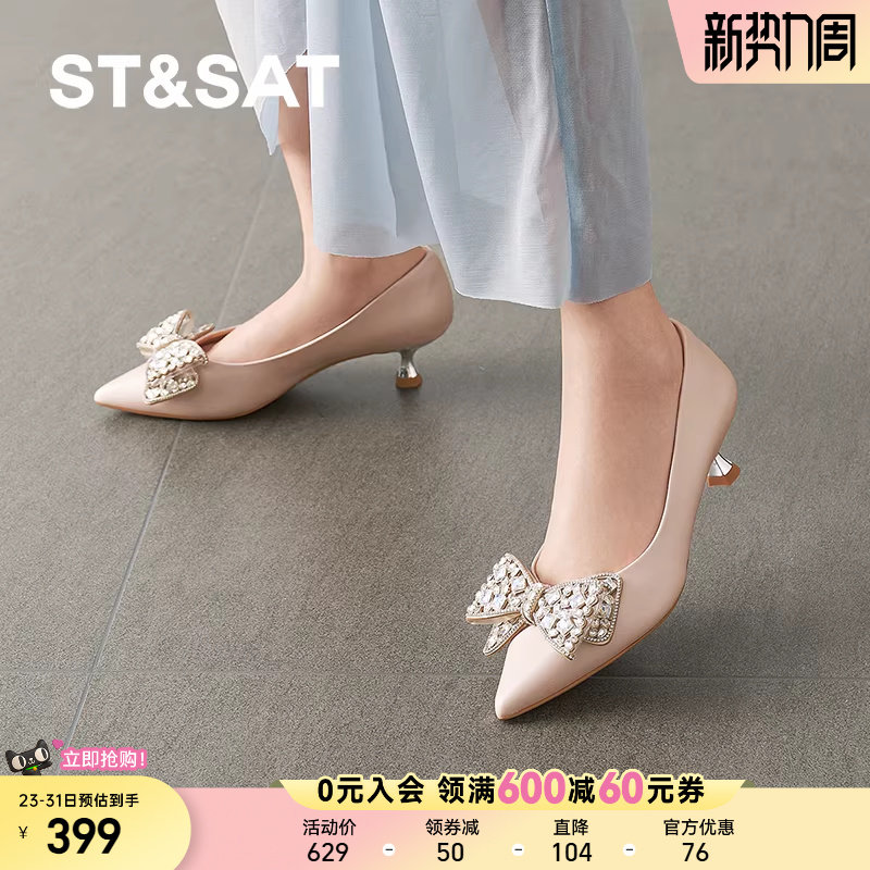星期六休闲气质高跟鞋蝴蝶结时尚气质流行尖头浅口单鞋SSD1111269