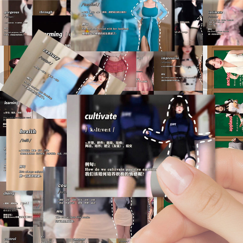 120张跟着美女学英语贴纸高颜值美女装饰笔记本手机壳防水贴画