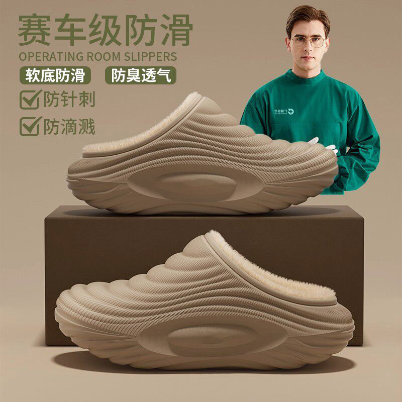 手术室防水棉拖鞋男士冬季新款室内居家医护保暖防臭加绒毛棉鞋女
