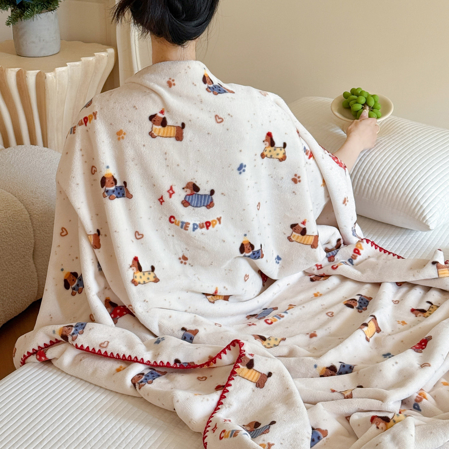卡通牛奶绒贝壳边毛毯双面加绒床单绒毯子午睡披肩盖毯沙发空调毯