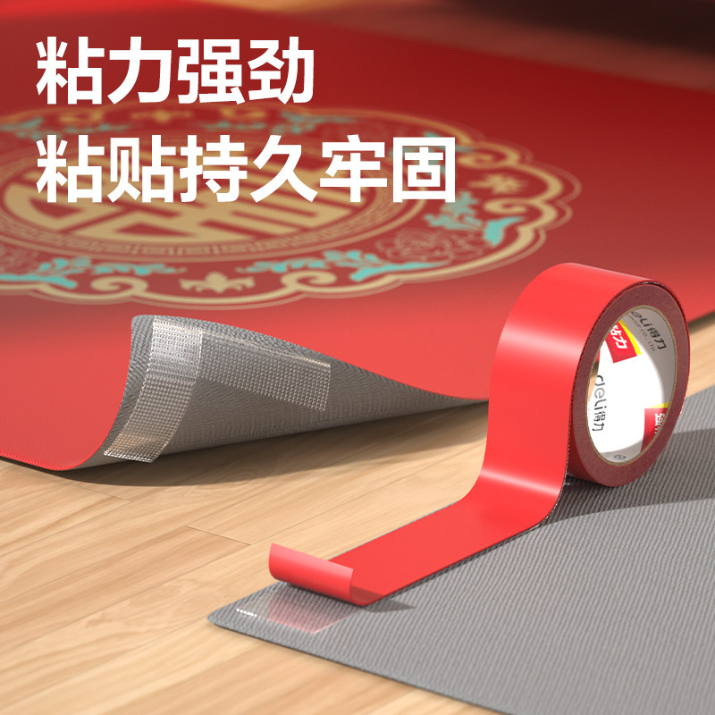 得力网格双面胶马年春联对联适用高粘度强力固定贴粘地毯不易留痕防水无痕墙面耐高温地板地垫布基胶带免打孔