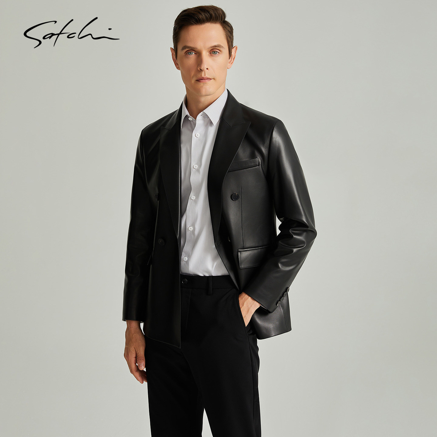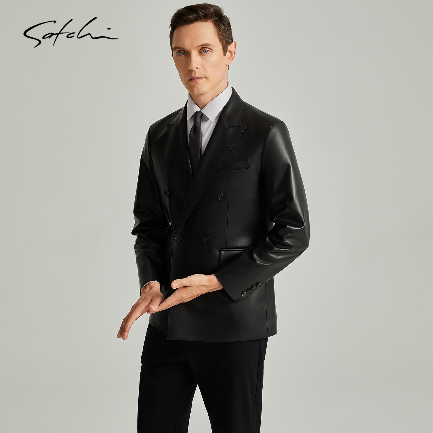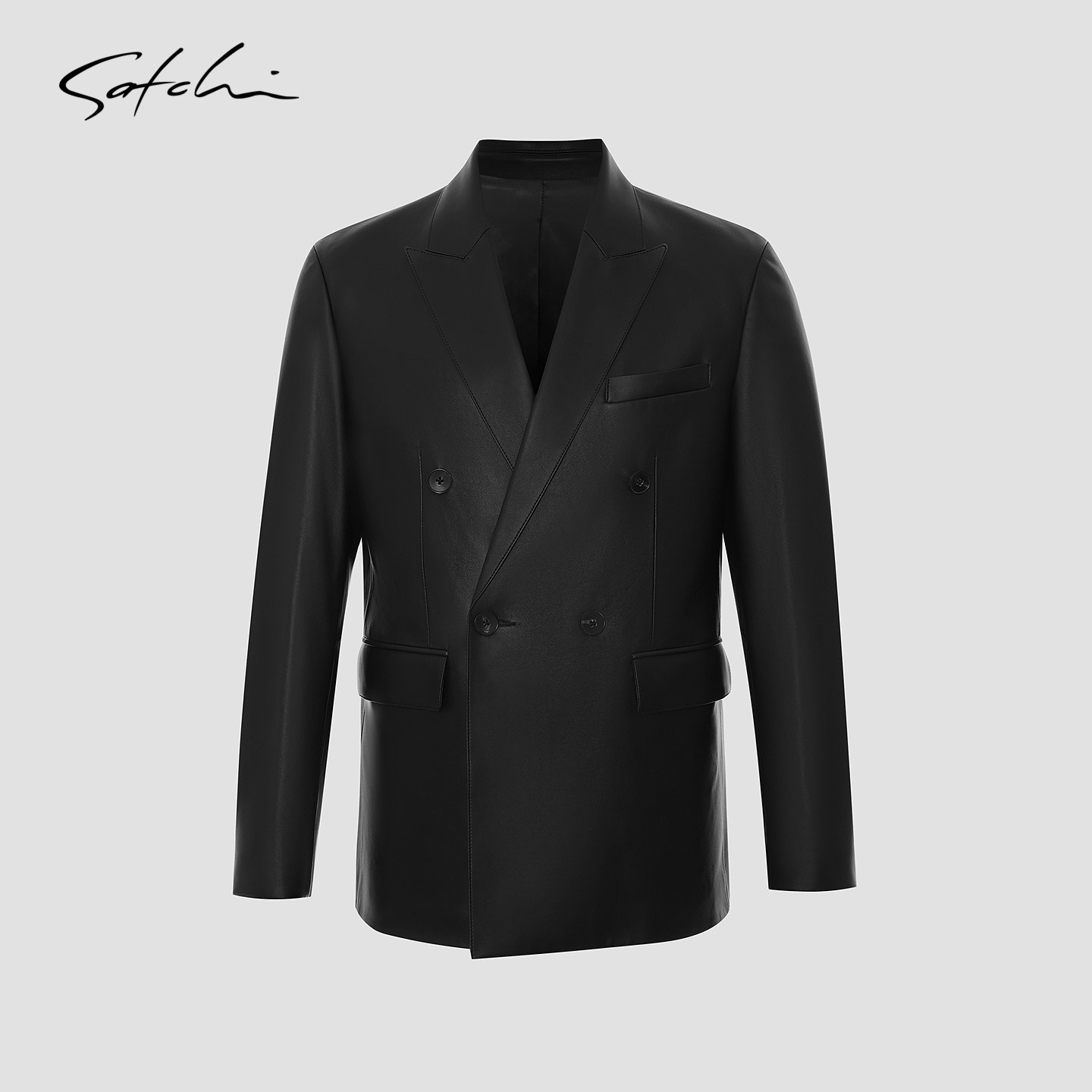 [双排扣]SATCHI沙驰男装男士真皮皮衣冬季新款高端英伦风皮夹克男