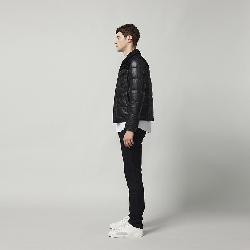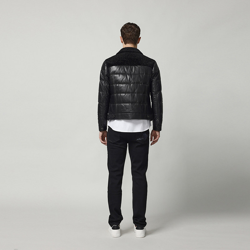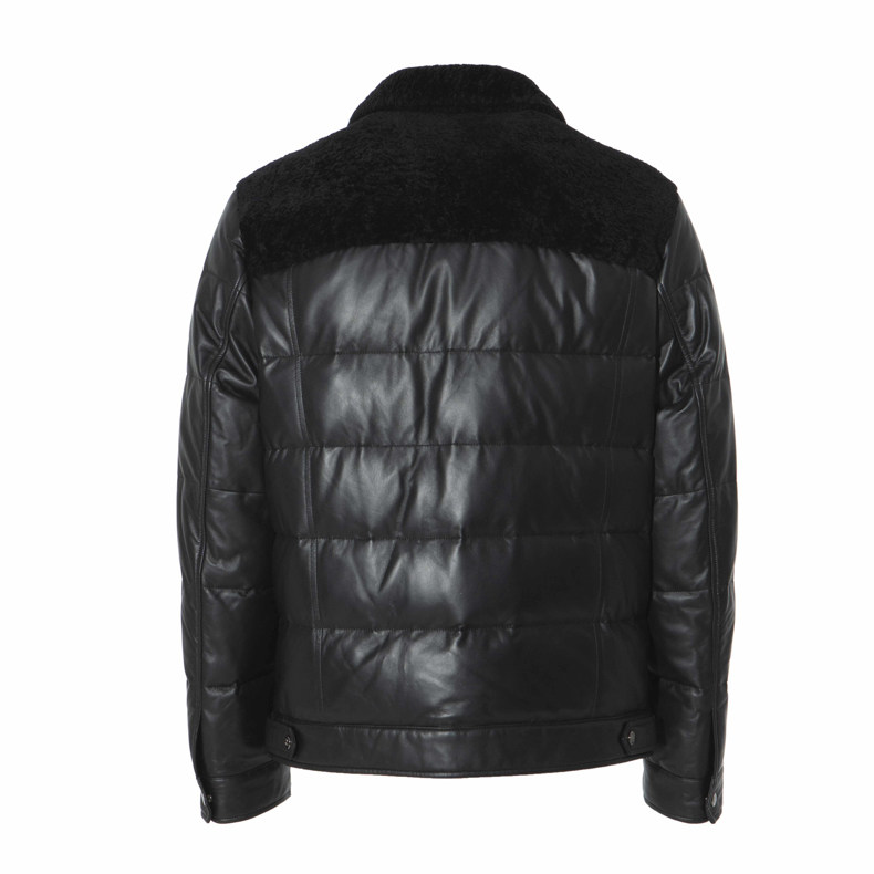 RARE威雅男装冬季新款真皮皮衣绵羊皮夹克男士黑色翻领羽绒服外套