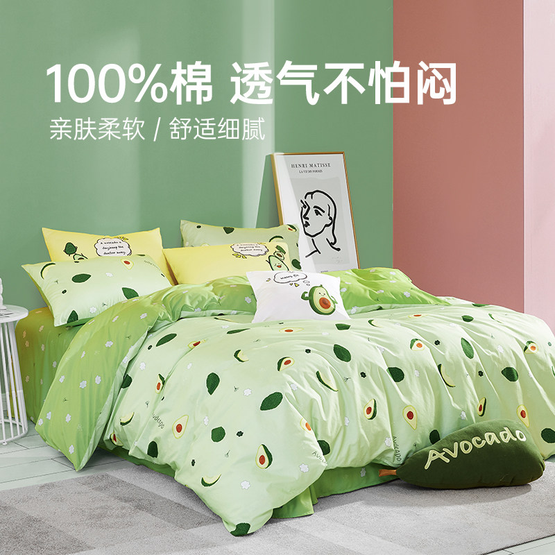 无印良品全棉四件套学生宿舍纯棉卡通儿童被套床单三件套床上用品