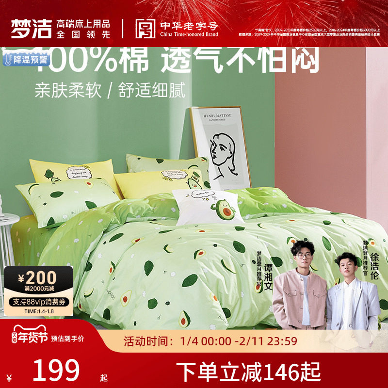 梦洁家纺床上三四件套纯棉全棉被套床单床上用品宿舍家用套件