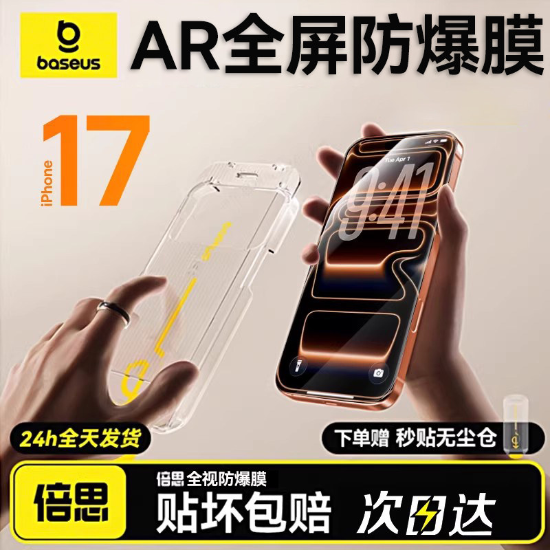 倍思无纹膜适用苹果iPhone17钢化膜AR抗反射16ProMax保护膜15Pro无尘仓14手机贴膜13全屏覆盖12抗摔11防爆Air
