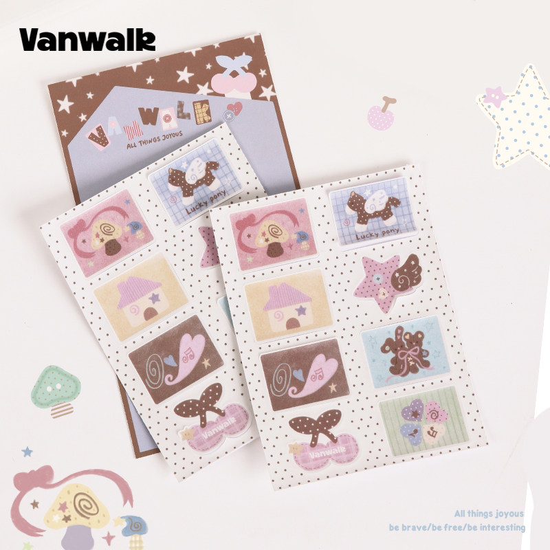 VANWALK lucky pony品牌定制创意趣味拼接贴纸ins简约手绘diy可爱治愈手账咕卡手机壳平板水杯行李箱装饰贴画