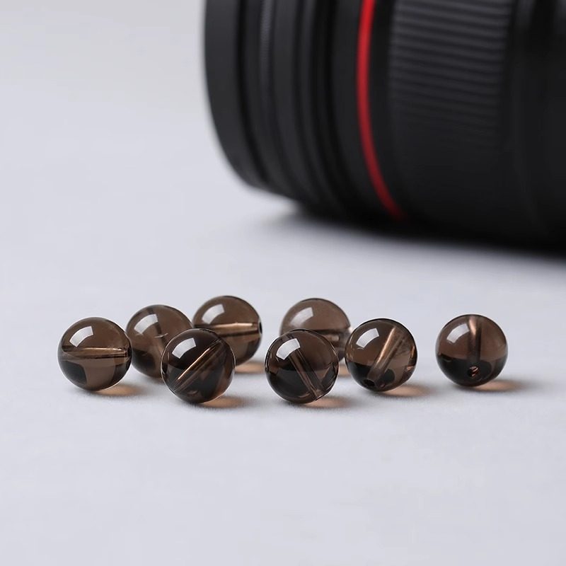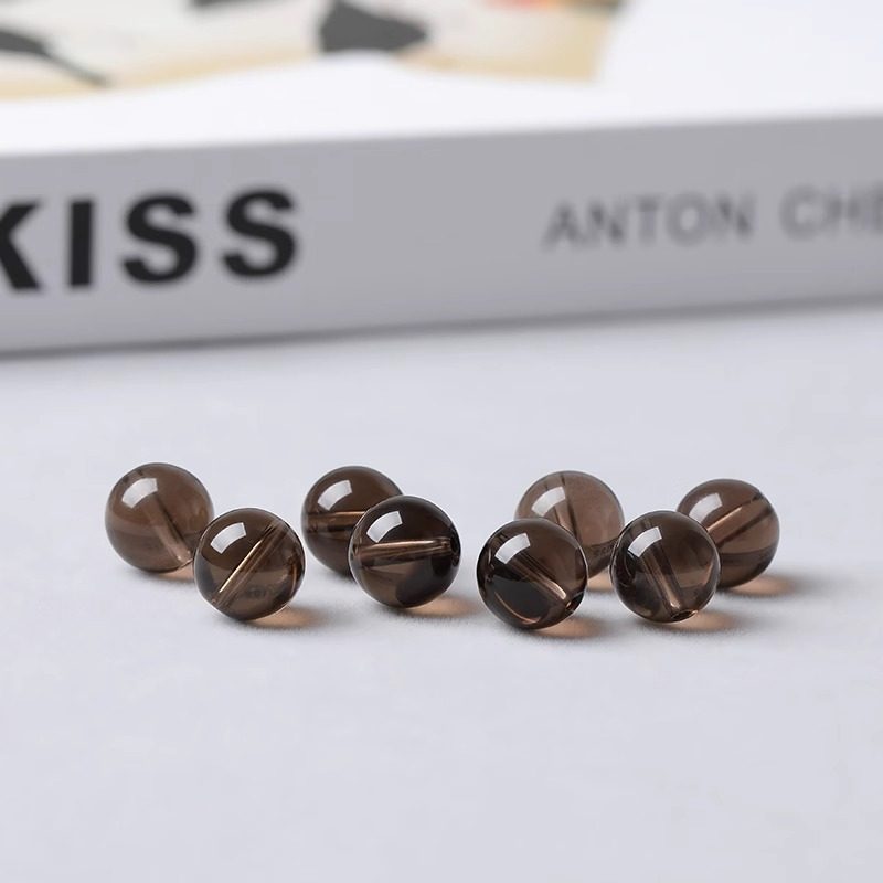 7A冰透茶水晶散珠手工DIY烟晶圆净体水晶玉石手串珠单珠配饰手链