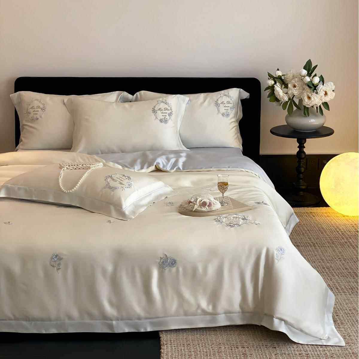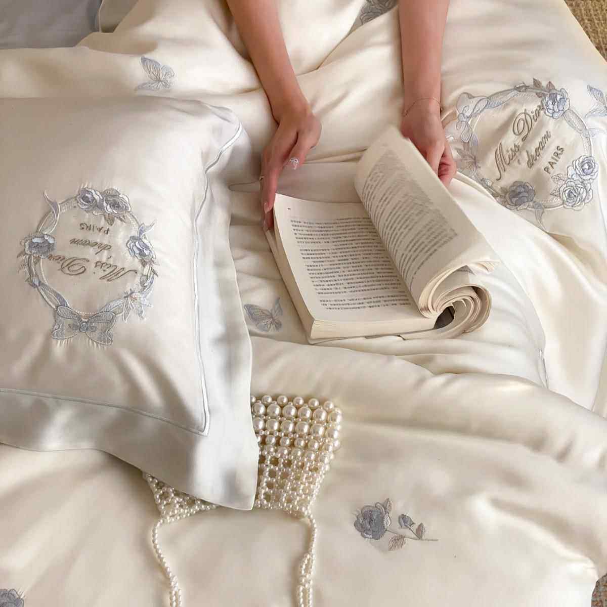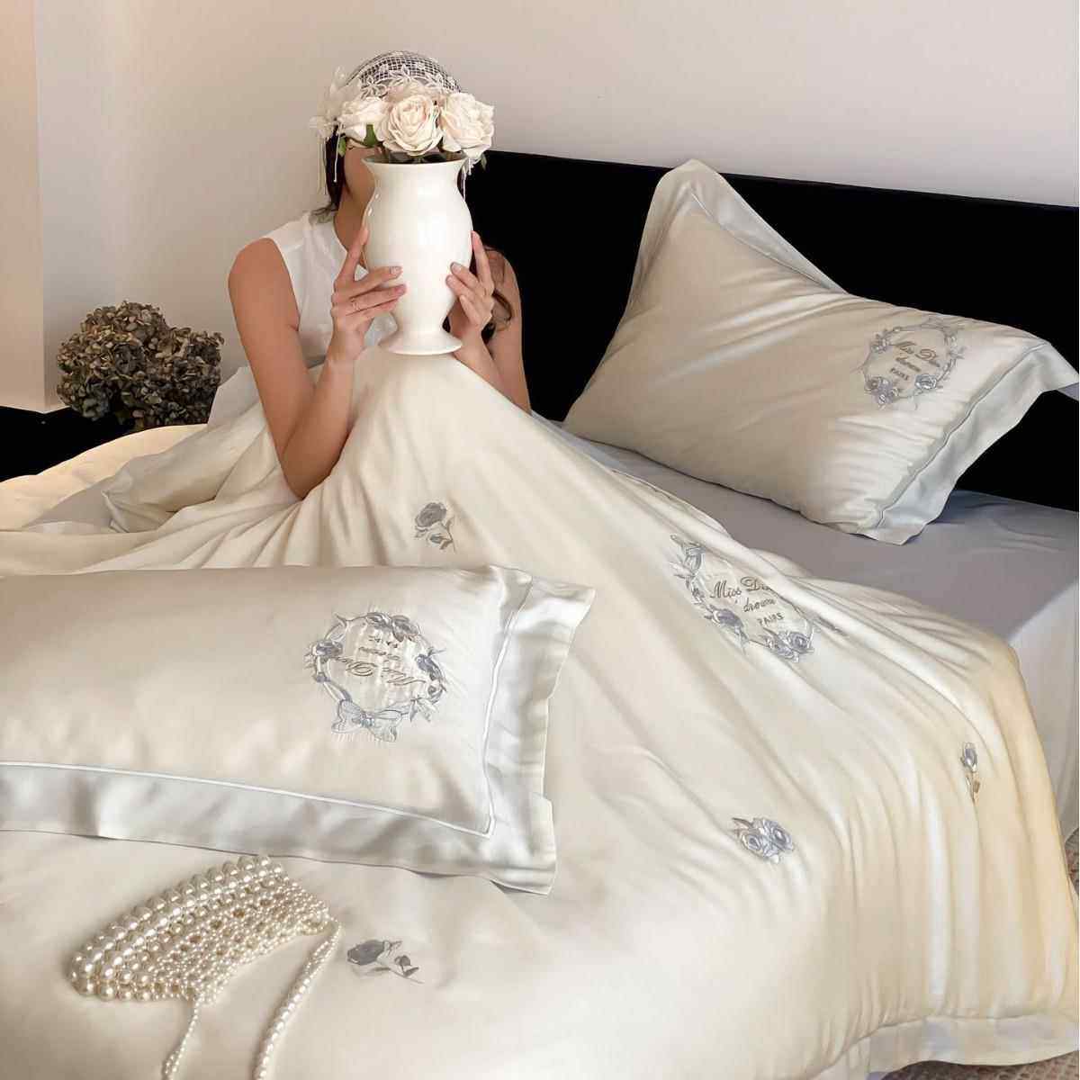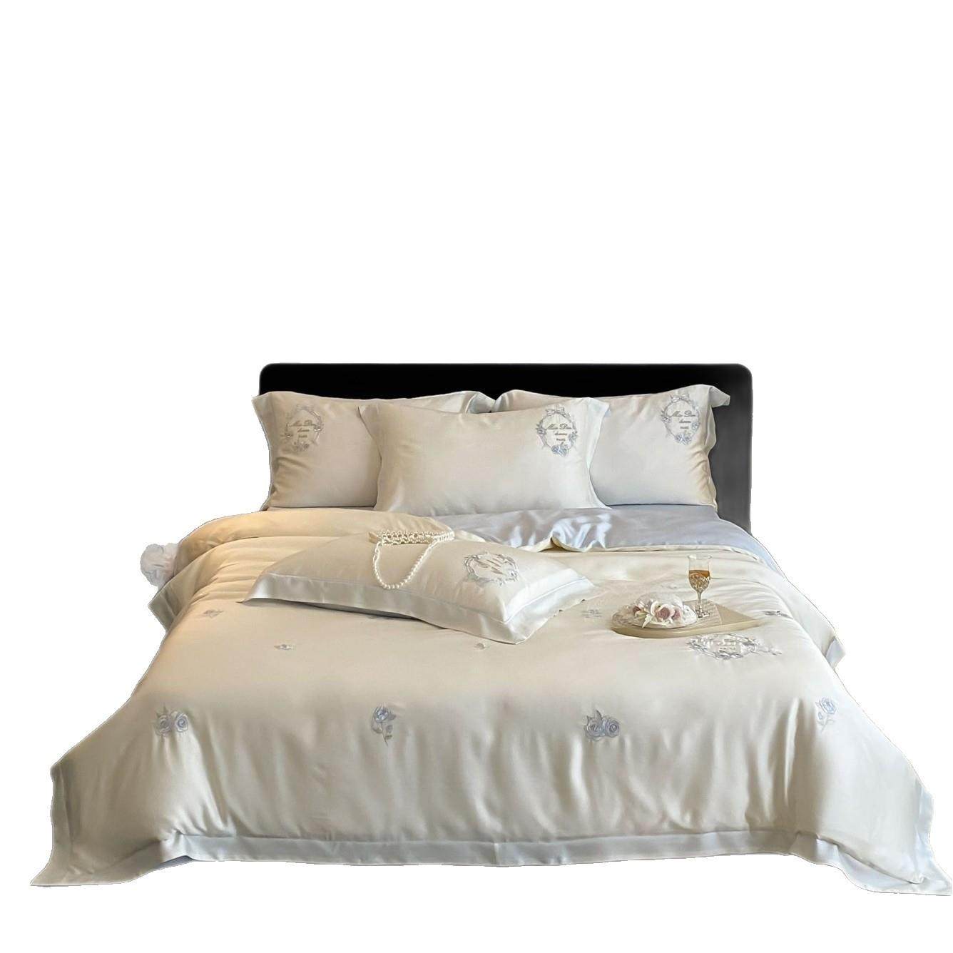 A类小清新夏季兰精天丝四件套浪漫花卉刺绣丝滑凉爽被套1.8m床品