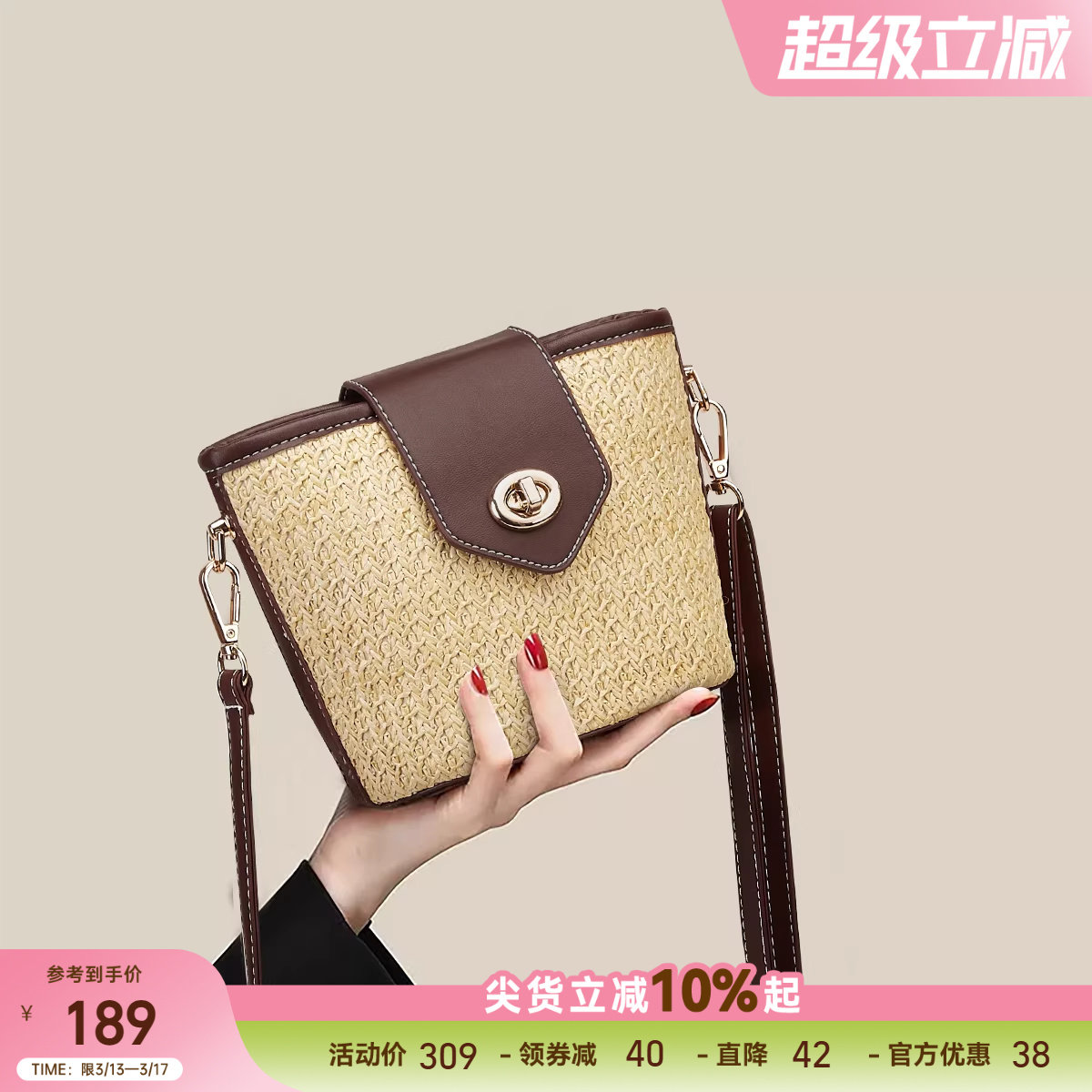 星期六包包女春夏新款时尚休闲斜挎草编包百搭小清新编织水桶包女