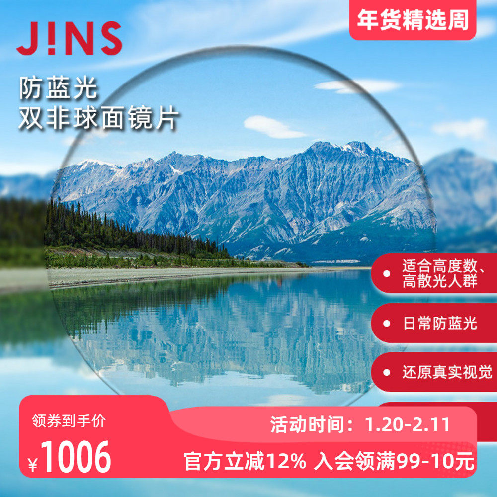 JINS睛姿近视眼镜升级 1.74轻晰真视双非防蓝光非球面镜片专用