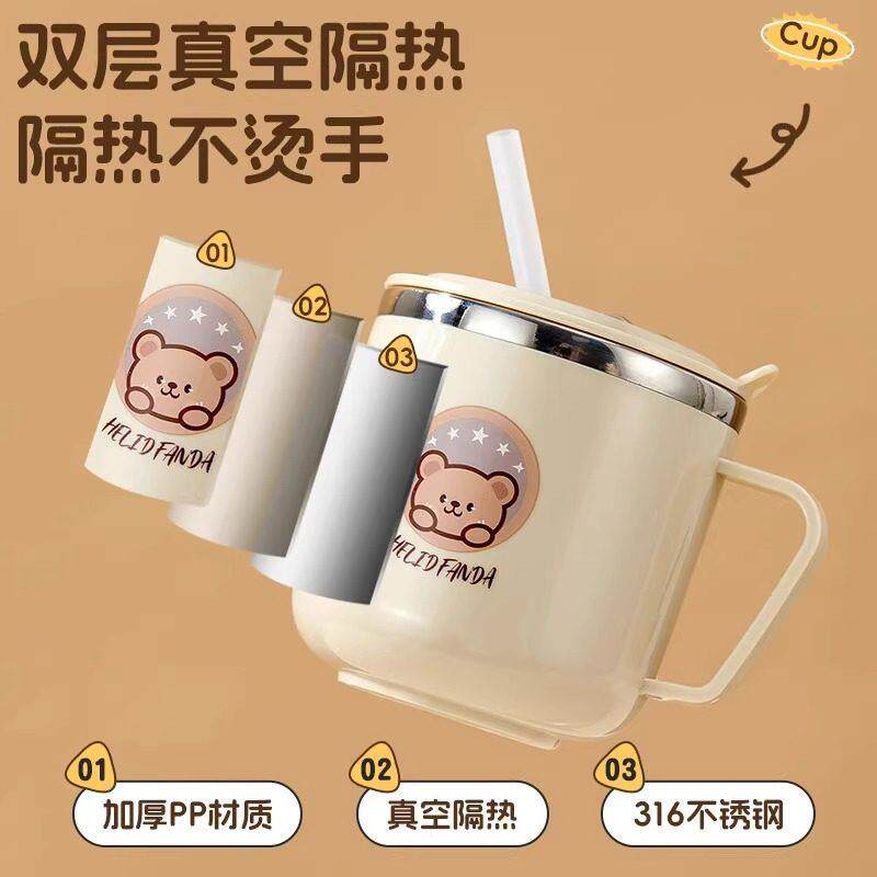 儿童水杯家用不锈钢防摔吸管杯敞口刻度喝水杯牛奶杯宝宝学饮杯子