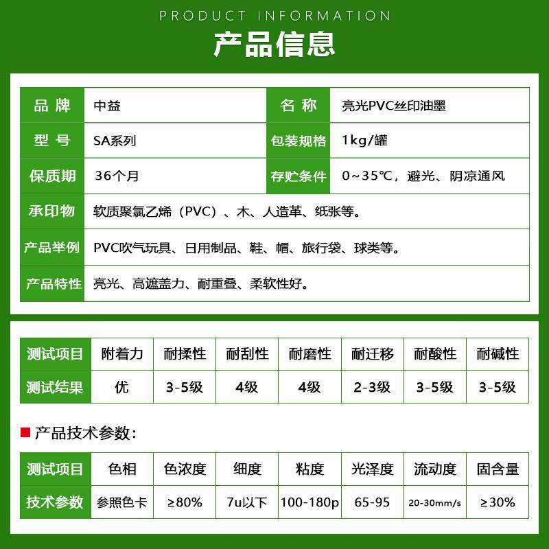 中益SA丝网印刷油墨亮光PVC丝网印纸日用制品鞋球类印刷油墨耗材